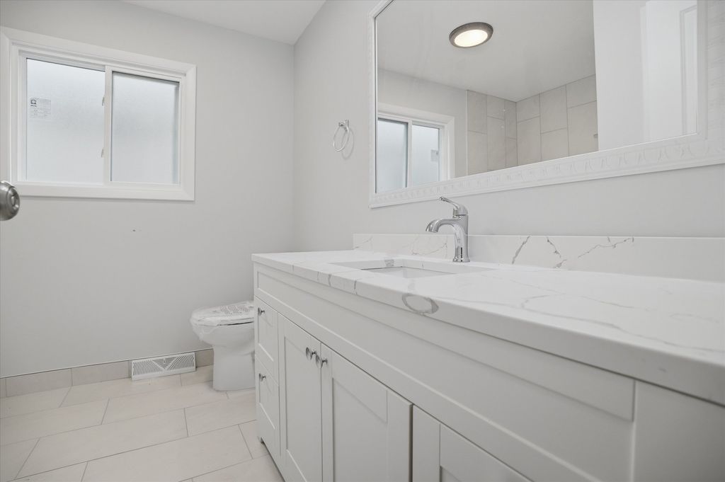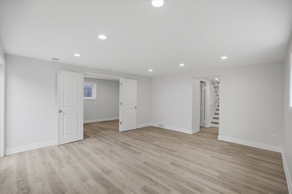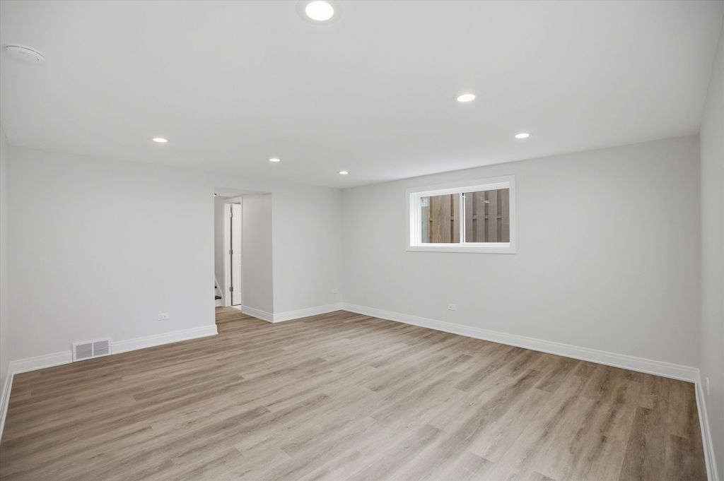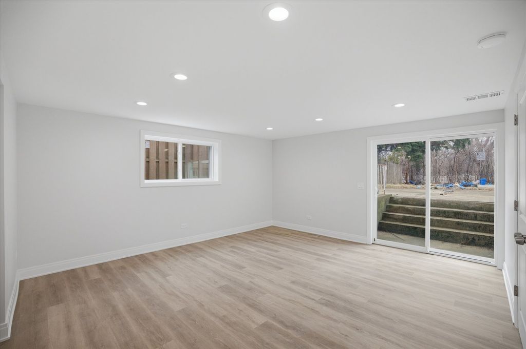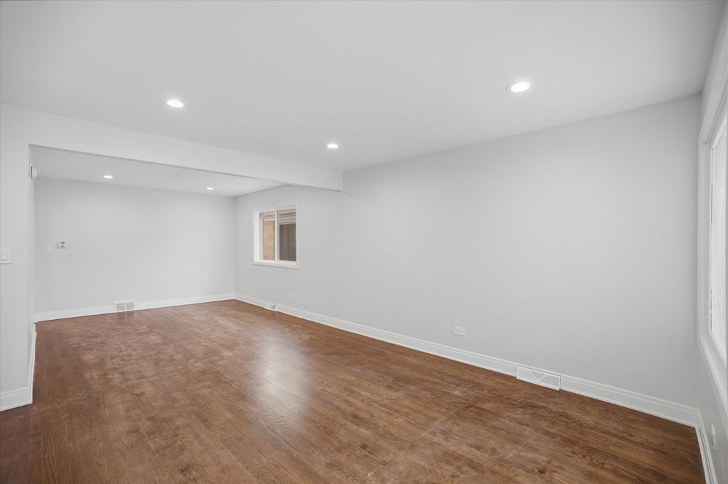 This newly rehabbed brick split-level home offers 3 bedrooms and 2 full baths, featuring hardwood floors, recessed lighting, and spacious rooms throughout. The main level includes a formal living room and dining room, along with an eat-in kitchen equipped with custom cabinets, granite countertops, a tile backsplash, and stainless steel appliances. The second level features three generously sized bedrooms and a full bathroom. The lower level offers a comfortable family room, a fourth bedroom, a full bathroom, and a separate utility room. Outside, you'll find a large fenced yard, a patio, and an attached one-car garage. Conveniently located near top-rated schools, parks, shopping, public transportation, and with easy access to expressways, this home is truly a must-see.