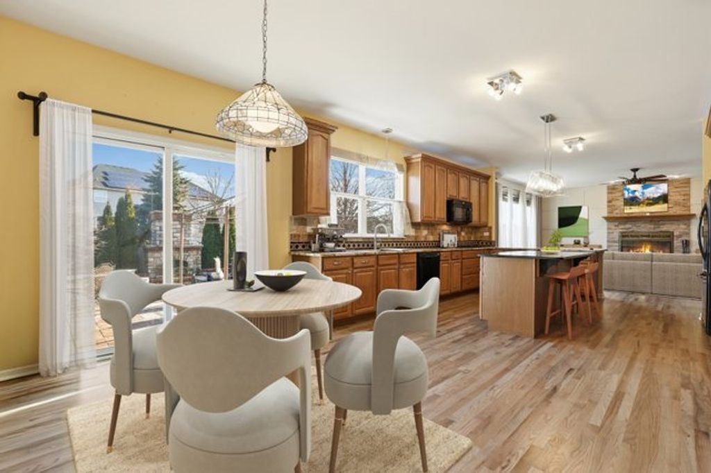 Elegant & tranquil living awaits in this stunning Oswego home, offering nearly 6,000 square feet of refined comfort in one of Oswego's most amenity-rich communities - Spring Gate at Southbury. With 5 bedrooms and 4 full bathrooms, this beautifully maintained residence blends sophisticated design with everyday functionality and thoughtful upgrades throughout. Step inside to soaring ceilings and newly refinished hardwood floors on the main level. The gourmet kitchen is a true showstopper featuring granite countertops, Black Whirlpool Gold appliances, a large island, walk-in pantry, and butler's pantry. Just off the kitchen is a sun-filled family room with a gas-start, wood-burning fireplace. A formal living room and dining room flank the foyer while a main level bedroom and full bath are ideal for guests. Upstairs, the expansive primary suite provides a peaceful retreat with room for a sitting area while the private en suite has dual vanities, a soaking tub and separate walk in shower. Three additional oversized bedrooms offer generous closet space and abundant natural light and share the hall bath with extra long vanity, soaking tub and separate shower. A convenient laundry room with tons of additional storage cabinet space completes the second floor. The partially finished basement is built for entertaining complete with a stylish wet bar featuring a kegerator and two beverage coolers, a pool table, and a brand-new full bathroom with walk-in shower and sauna. A large workshop and ample storage storage space finish off the basement. The backyard is your private outdoor oasis with a custom brick paver patio, outdoor kitchen, and a striking masonry wood-burning fireplace set on a stamped concrete patio with plenty of grassy space. Major updates include Roof (2016), A/C & Furnace (2019), and Water Heater (2022). Located in a serene community with access to a clubhouse, pool, tennis courts, playgrounds, and scenic ponds. Don't miss your chance to own this exceptional, move-in-ready home in one of Oswego's most desirable neighborhoods!