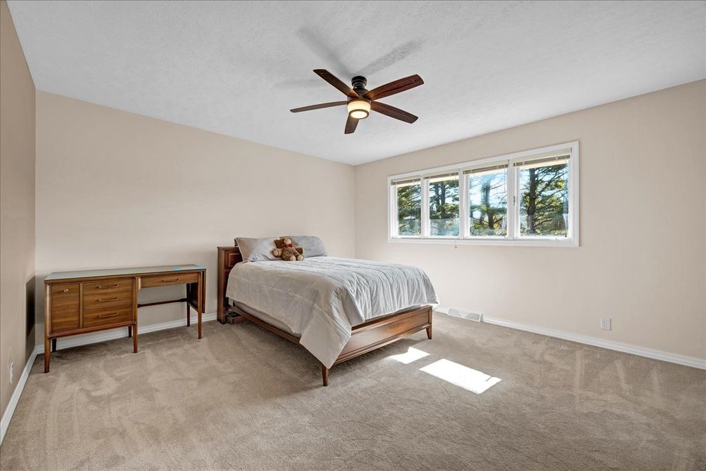 Located in the award winning Tri-Valley School District, this two story home in sought after Charterwood Farms subdivision is waiting for new owners! Located on a generous 1.25 acre lot, this two story home has 5 bedrooms, two full and two half bathrooms, and generous size rooms with many updates. A large foyer greets you from the covered porch as you enter, with a half bath located conveniently to the right. A warm and cozy family room with wood burning fireplace is adjacent to the updated kitchen. Kitchen includes beautiful Merillat hickory kitchen cabinets, with full extend drawers, and convenient pullouts, and a perfect area for your coffee bar. Luxury vinyl plank floors complete this gorgeous kitchen, which includes an eat in area looking to the north over the picturesque countryside. Adjacent to the kitchen is a spacious room with a wonderful view through an eight foot sliding glass door. This space could be used for a formal dining, office, game room, tech center, or as you desire. A large living room with many windows also has new luxury vinyl plank flooring, and views of the ever changing four seasons from multiple directions! The main floor also includes a bedroom, with a second half bath close by. Main floor laundry with convenient cabinetry completes the first floor. Upstairs are four generously sized bedrooms and a full hall bath updated in 2020. A large primary bedroom with full updated bath includes double sinks, a walk in closet. Enjoy evenings from the comfort of your second story deck overlooking the beautiful countryside with no backyard neighbors. Additionally, a second bedroom can also access the second story deck. A large basement is just waiting for you to add your finishing touches to expand your living area should you so desire! One additional advantage to residing in beautiful Charterwood Farms is the associations community pool, two ponds that provide opportunities for fishing, canoeing, and ice skating, three parks which include a playground, pavillion, fire circle, wide open field for soccer, baseball, softball and other activities, plus a nature area that was originally part of Old Town Timber. Annual dues currently at $786 per year cover the use of all of these amenities. This is a stunning home with amazing views, extensive living space, and is ready for you to make it your new home!