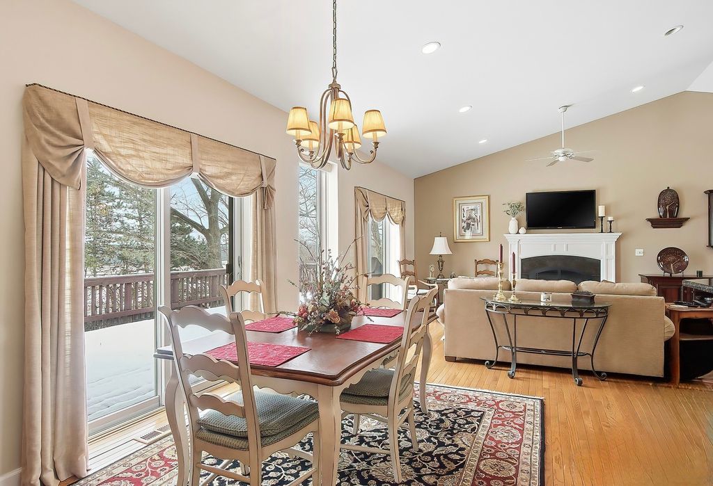 Meticulously cared-for 3-bedroom ranch located in the highly desirable Nottingham Woods subdivision, offering nearly 5,000 sq ft of finished living space ~ Step into a spacious foyer filled with natural light from a skylight, creating an open and airy first impression ~ Vaulted ceilings enhance the seamless flow between the kitchen, living room, and dining room-perfect for both everyday living and entertaining ~ A true chef's dream kitchen features stainless steel appliances, abundant counter space, and a generous eat-in area ~ Two sets of sliding glass doors from the dining and living rooms invite the outdoors in, leading to an expansive deck ideal for grilling, entertaining, and taking in breathtaking panoramic views of the treetops ~ The luxurious primary suite is a private retreat with vaulted ceilings, skylights, its own sliding doors to the deck, and a spa-like bath featuring double sinks, a separate soaking tub, and shower ~ The spacious walk-in closet offers excellent organization and storage ~ Enjoy warmth and charm year-round with a fireplace on each level ~ The finished lower level provides endless possibilities-an entertainment space, full bathroom, and second kitchen make it ideal for multi-generational living or guest accommodations ~ Large windows allow for easy conversion to a fourth bedroom ~ Two additional sliders open to a patio and a fully fenced backyard just under an acre, offering a park-like setting with mature trees and plenty of space to run and play ~ The patio includes a ceiling fan to keep cool on warm summer days ~ Additional highlights include main-level laundry and 3.5 garage spaces, including an extra-deep bay perfect for a boat with motor, large truck, or outdoor toys ~ **** The entire home is constructed with a solid concrete structure, including both the foundation and the main ranch level ~ This design makes it extremely energy efficient ~ During the hot summer months, simply drawing the shades helps keep the whole house cool, significantly reducing the need for air conditioning and keeping energy bills low!!!**** Nature enthusiasts will love the unbeatable location-close to Glacial Park Conservation Area, Chain O'Lakes, and Chain O'Lakes State Park ~ This is truly a special home in a fantastic setting with so much to offer ~ Schedule your private showing today-this one is a must-see!