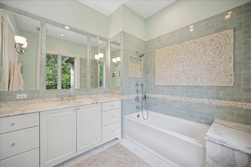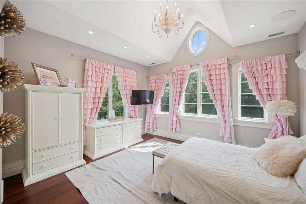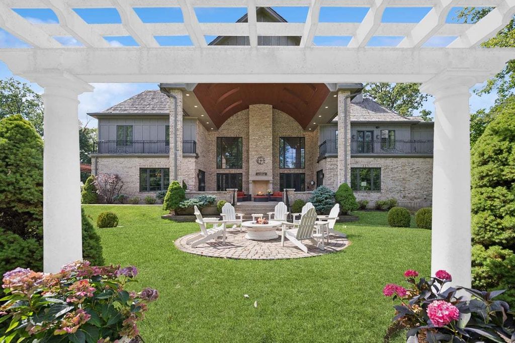 Tucked behind a private drive on one of Northbrook's most coveted streets, The Bridlewood Estate is a statement of timeless luxury and architectural mastery. Sitting on 2.2 acres of manicured grounds, this residence redefines what it means to live grandly on the North Shore. The stone facade and paver motor court create a magnificent arrival, while inside, a soaring 23-foot great room with floor-to-ceiling windows sets the tone-airy, dramatic, and unforgettable. Every detail was crafted to blend elegance with endurance: thick masonry walls, concrete subfloors, and commercial-grade systems ensure this home is built to last for generations. Designed for both grand entertaining and comfortable living, the main level flows effortlessly from one extraordinary space to the next. The chef's kitchen dazzles with custom cabinetry, a massive center island, stone countertops, and professional-grade appliances. A sun-filled breakfast room opens to the yard, while the family room-with a full wet bar-invites relaxed gatherings. A richly appointed office, vaulted playroom, and impressive home theater elevate daily living. For ultimate convenience, a private elevator services all three levels. Upstairs, the primary suite is a serene retreat with its own sitting area, double-sided fireplace, and private terrace overlooking the estate's lush grounds. The spa-inspired bath offers a ceiling-fill soaking tub, a steam shower with multiple heads and digital controls, and a walk-in closet that feels more like a boutique. Five additional bedroom suites, a loft lounge with a large deck, and a second laundry room complete the upper level. Outdoor living is nothing short of resort-style. Multiple terraces and patios extend to a screened porch with a fireplace, and an extraordinary entertaining pavilion anchors the backyard-complete with an outdoor kitchen, soaring wood-beam canopy, and dramatic stone fireplace. Surrounded by mature landscaping and complete privacy, this is the kind of setting that feels worlds away, yet is just minutes from downtown Northbrook and Glenbrook North High School. Equal parts craftsmanship, comfort, and sophistication, The Bridlewood Estate is more than a home-it's a private sanctuary designed to inspire awe at every turn.