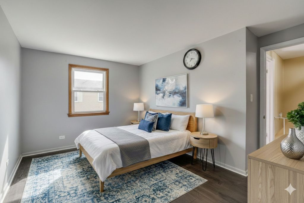 Move in now to this spacious, low-maintenance 3-bed, 1-1/2 bath townhome. Recent updates include refrigerator, furnace, water heater, and central ac. The main level offers an open, ceramic-tiled eat-in kitchen with stainless steel appliances and access to your private patio & yard for summer grilling and gardening enjoyment. The kitchen/living/dining has ample light. All three bedrooms and the upstairs hallway feature 3-yr old dark stained wood floors and spacious closets. The primary bedroom will comfortably handle a king-sized bed. The finished ceramic-tiled basement provides flexible space for a family room, office, or potential fourth bedroom along with a separate laundry room with amazing storage and sump pump for flood control. The association is just $95 per month, which includes lawn care, snow removal, and scavenger service. Located near shopping, schools, and transportation. Located within the boundaries of the highly-rated Eugene Field Elementary, Jack London Middle School and Buffalo Grove High School. One assigned parking space plus ample guest parking. Association rules say no rentals and one pet allowed.
