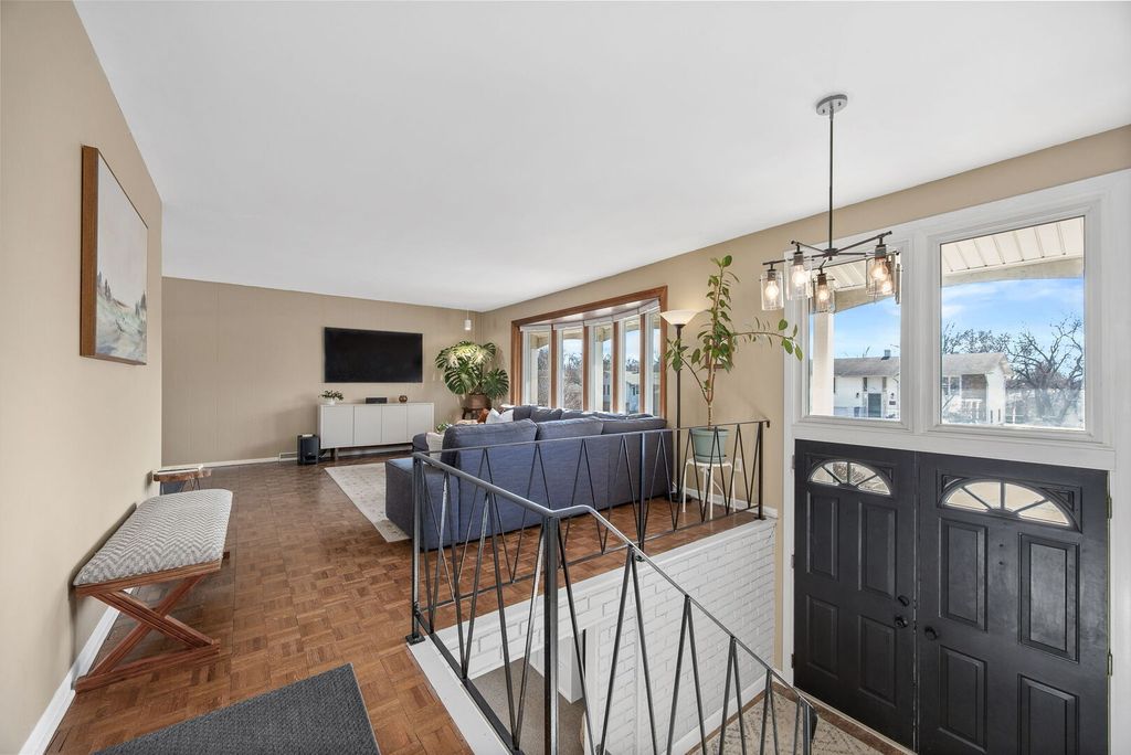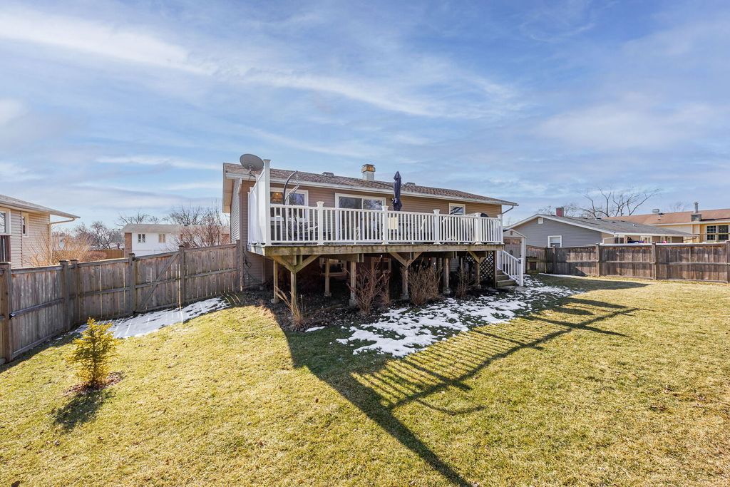 Welcome to this beautifully updated 4-bedroom, 2-bath raised ranch offering 1,872 square feet of well-designed living space in desirable Woodridge! Step into a bright entryway that opens to the living and dining rooms, where hardwood parquet flooring gleams and large windows fill the home with natural light. Recent paint updates throughout the entry, living room, dining room, and kitchen create a clean, move-in-ready feel, complemented by updated lighting in the entry and dining areas. New interior doors throughout the home add a crisp, cohesive finish. The kitchen features white cabinetry, white tile backsplash, Samsung stainless steel appliances, LG dishwasher, and an impressive 8-foot sliding glass door leading to a spacious 26' x 16' wood deck, completely replaced in 2015, with vinyl railing and stairs to the backyard, making it ideal for outdoor entertaining. The main level includes three generously sized bedrooms with newer carpet (2020). The full bathroom was completely renovated in 2018 (taken down to the studs) and showcases dual natural wood vanities with abundant storage, large mirrors, and a shower/tub combination. The lower level has been recently painted and expands the living space with a bright recreation room featuring newer light fixtures, a versatile fourth bedroom perfect for a home office, guest room, or fitness space, and a full bathroom with stand-up shower. The laundry room includes washer and dryer, along with newly installed partitions (2026) for added organization. Exterior highlights include a classic brick and vinyl facade, newer Gilkey windows throughout, a two-car attached garage, and a fenced backyard with professional landscaping featuring a Quaking Aspen, River Birch, four Arborvitae, and two Ninebark trees. Conveniently located just minutes from downtown Downers Grove, approximately 2 miles from the Belmont Metra station for easy access to Chicago, and close to parks, schools, I-355, and I-88. Move-in ready with thoughtful updates throughout, schedule your private showing today!