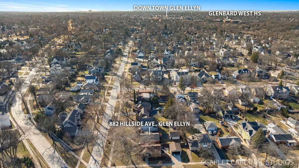 882 Hillside Ave offers exceptional one-level living in the heart of in-town Glen Ellyn. This updated ranch features over 2,000 square feet of total living space, including 3 bedrooms and 2 full baths. The thoughtfully renovated kitchen (2023) showcases modern finishes, while hardwood floors span much of the main level. A FULL, partially finished basement provides additional living and storage space, complemented by a 2-CAR GARAGE. Recent updates include on trend paint colors, hot water heater (2026), freshly painted garage and new asphalt driveway (2025) and tear off roof (2018). Ideally located within walking distance to Ben Franklin Elementary, Glenbard West High School, the Prairie Path, Metra station, and all that the charming village of Glen Ellyn has to offer. A truly move-in ready home in a highly sought-after location. Welcome Home!