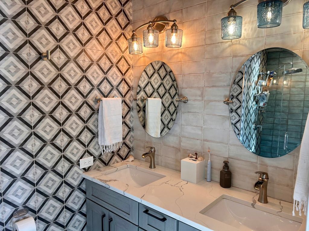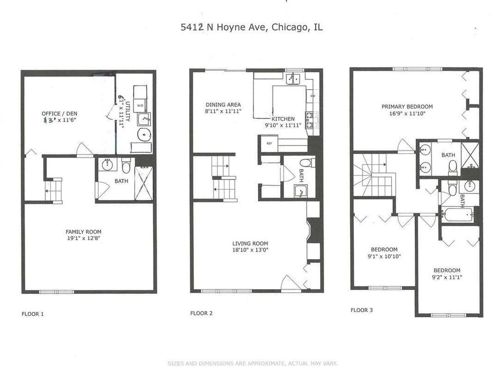 Experience upscale living in this beautifully updated townhouse-style condominium in quiet Bowmanville. This highly sought-after 3-bedroom, 3.5-bathroom home spans three finished levels, offering both elegance and functionality. ~ The sun-filled main level features hardwood flooring throughout, a cozy wood burning/gas starting fireplace with custom reclaimed wood bookshelves, in a freshly painted, bright living room. The stunning remodeled kitchen boasts ample custom gray cabinets, white quartz counters, stainless steel appliances, and subway tile backsplash/accent wall. The adjoining dining room has matching buffet cabinetry. Finishing off this level are two pantry closets, power room, and an amazing privacy-fenced yard with a new Unilock natural stone patio with firepit: perfect for entertaining. ~ The second level also features hardwood flooring throughout. The primary bedroom includes a cathedral ceiling, double custom closets, an updated bath with a double quartz vanity and an oversized shower with a rain shower head. The two additional bedrooms have ample closet space and share another full bath. ~ The finished basement offers a spacious family room with luxury vinyl plank flooring, a third full bath featuring a steam shower with imported Italian tile and towel warming rack, plus a bonus room (office/workout/den) and a utility/laundry room. ~ This unit comes with one of the only private 2 car garages, recently drywalled and applied with a polymer concrete floor coating. ~ Recent updates include a kitchen remodel (2020), new fence (2022), central A/C (2021), hardwood flooring on the first and second levels (2020), luxury vinyl plank basement (2020), basement bath (2021), Anderson patio door (2018), and water heater (2019). The well-run association ensures peace of mind. ~ Enjoy an excellent location near Peterson Metra, CTA Brown & Red Line stations, Andersonville dining and shopping, highly ranked public and private schools, and beautiful city and lakefront parks. Relish Bowmanville's tranquility while being close to Andersonville and Lincoln Square.