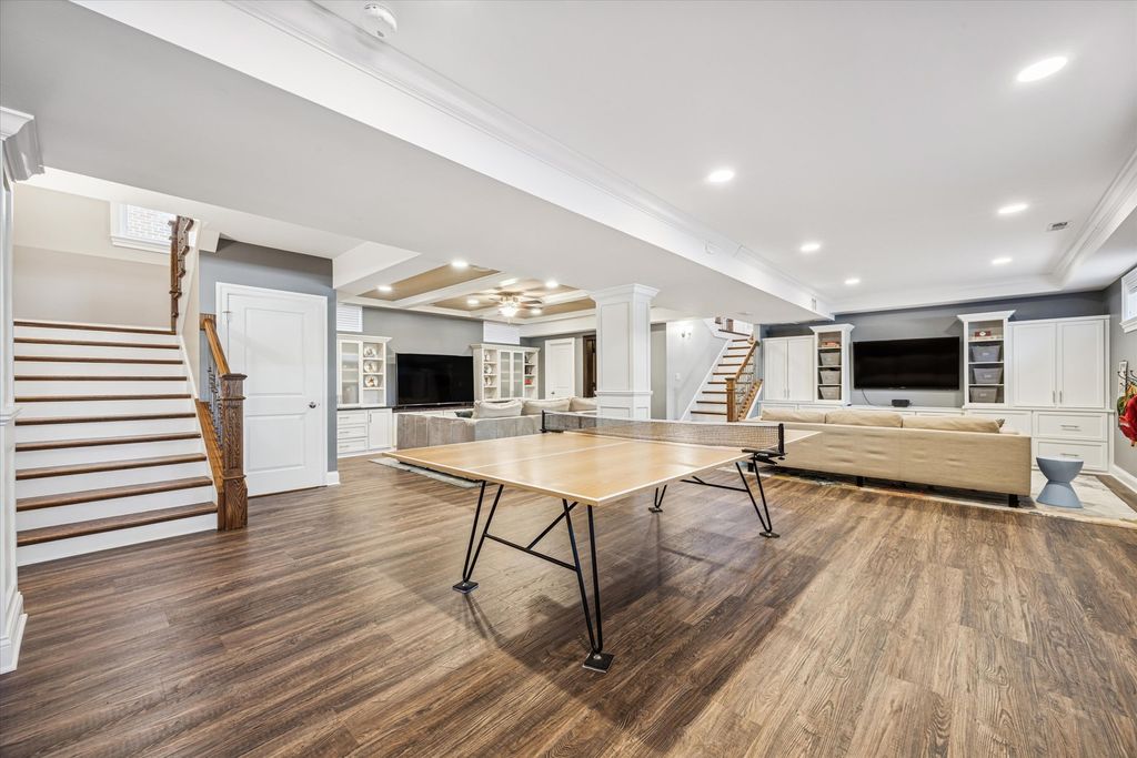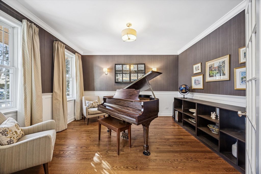 Welcome to this beautifully crafted modern farmhouse in coveted Old Town Western Springs. Custom built in 2012 this home showcases timeless design and high-end craftsmanship throughout, including 3" hardwood floors, striking millwork, coffered ceilings, and designer finishes. The chef's kitchen anchors the main level with a large center island, stainless steel appliances, butler's pantry with beverage center, and newly updated countertops and backsplash. Nearly every room has been thoughtfully enhanced by a private Chicago interior designer in recent years with custom lighting, wallpaper, paint selections, and window treatments. The open-concept first floor offers exceptional flow and functionality, featuring an oversized office/living room, formal dining room, and a family room with fireplace open to the kitchen and breakfast area. Four finished levels provide flexibility for today's living. The second floor includes four spacious bedrooms. The primary suite offers a refreshed spa-like bath and oversized walk-in closet. Two bedrooms share a Jack-and-Jill bath with private vanities, while the fourth enjoys its own en suite. The third floor provides a fifth bedroom or ideal home office. The lower level is seamlessly integrated via two open staircases and features a recreation room with built-ins, wet bar, full bath, exercise room with Murphy bed (perfect as a sixth guest space), and a temperature-controlled wine cellar. Additional highlights include dual-zoned HVAC, first-floor laundry and mudroom, and a professionally landscaped, fenced yard with built-in firepit. Ideally located near Laidlaw Elementary, Sereda Park, downtown Western Springs, expressways, pool, theater, and rec center. A rare, turnkey luxury opportunity.
