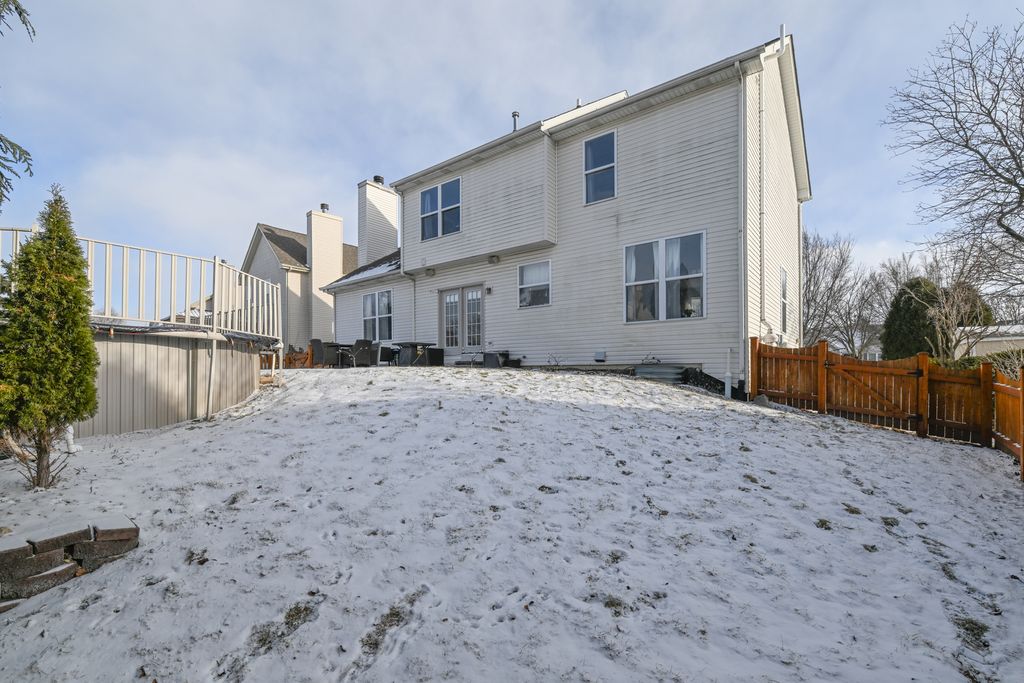 Beautifully updated three bedroom and two and a half bath home spread across 2100 square. The first floor showcases a large kitchen with island and eat in area. The spacious family room has a gorgeous wood-burning fireplace, creating a warm and inviting atmosphere. Formal dinning & living room round out the live. The primary suite offers a private ensuite bathroom with dual sinks, a separate shower, a soaking tub, and a walk-in closet. Two additional generously sized bedrooms-one with a walk-in closet-along with a large loft that can easily be converted into a fourth bedroom. Additional bathroom on this level. The backyard is a true retreat, featuring a 15x30 above-ground pool with a heater, pump, and liner, along with a beautifully landscaped yard and expansive patio-perfect for relaxing or entertaining. Additional highlights include a deep-pour basement with a rough-in plumbing for a future bathroom. The oversized two and a half garage has an additional space for work shop, storage or additional parking. Major mechanical updates include a furnace (2***), A/C (2****), and water heater (2***).