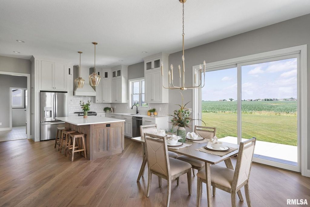 This fully finished 5-bedroom home offers the perfect blend of space, style, and convenience. The upper level features 4 spacious bedrooms, including a beautiful primary suite with a tile walk-in shower and oversized walk-in closet. Laundry is located upstairs for ultimate convenience. The main level offers an open concept kitchen with large island, walk-in pantry, engineered wood flooring, and informal dining area - all open to the great room with boxed beam ceilings. A main floor den with closet provides flexible space for a home office or guest room. The finished basement level includes a large rec room, bar area, 5th bedroom, and full bath - perfect for entertaining or guests. The 3-car garage offers ample storage. Located just minutes from TBK Bett Plex, Davenport Country Club, the new Joan of Arc Catholic School, Pleasant Valley Schools, shopping, dining, and easy interstate access.