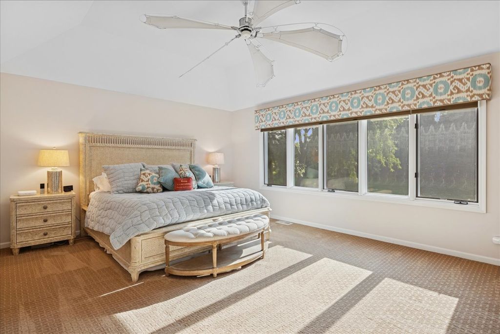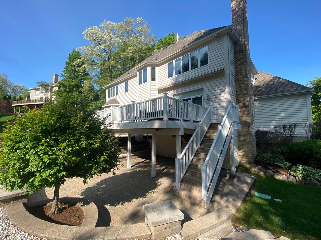 This perfectly maintained two story home on the first hole at Bull Valley Golf Club has so many updates and is ready for a new owner! The gorgeous perennials are blooming beautifully on this 3/4 acre lot with mature landscaping providing so much privacy. The family room has newer carpet, brick fireplace with gas logs, built in cabinetry and is open to the kitchen and eating areas, both with recently refinished hardwood floors. Formal dining and living rooms, also with refinished hardwood floors, adjoin to allow for expansive holiday gatherings. Enjoy this flexible floor plan allowing for 3 to 4 bedrooms on the 2nd floor and an additional 5th bedroom or office with French doors on 1st floor with direct access to a full bath. The Primary Bedroom has a sitting area that could be closed off to the bedroom and opened to the hallway to create a 4th bedroom on the 2nd floor. First floor laundry with washer, dryer, sink, cabinetry and closet comes in from the 3 car heated garage. There's also a wonderful full unfinished walkout basement with cedar lined closet and fireplace waiting for your ideas! The kitchen and both upstairs full baths updated in 2017 with creamy white cabinetry and granite counters! New roof and gutter leaf filters 2019. The windows on the first floor (not sliding glass doors) were replaced with Andersen windows 2024. New 75 gallon hot water heater 2025. HVAC replaced approx 6 years ago. All Trex deck off kitchen and family room with a roll out awning for morning sun. Large brick paver patio off walkout lower level, security and sprinkler systems. Beverage cooler, wine refrigerator and 2nd stove in basement will stay. Garage Refrigerator, Garage Vacuum, Shelving and Garage heater will stay. **Please note the property tax bill does not include any exemptions.
