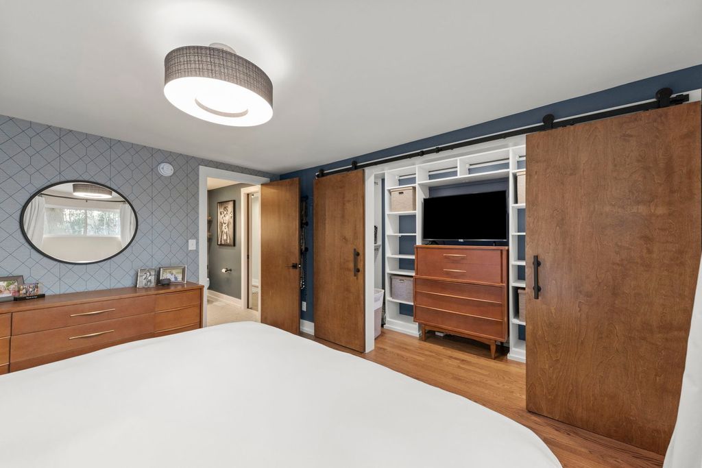 Looking for an absolute gem? This custom rare mid century modern ranch has some incredible finishes. With over 2000 sqft, step though 2 brand new doors that match the MCM style and beauty. This home features an updated eat-in kitchen with granite countertops, 42" soft close cabinets and drawers. Huge living room with a massive wood burning fireplace. Large family room with a 2nd wood burning fireplace. Beautiful refinished oak floors throughout the LR, bedrooms, and hallway. The incredible master bath was refinished top to bottom and features a floating dual sink vanity with a quartz countertop, a beautiful soaker tub, and a shower that's handicap accessible. Master bedroom has built in closet features and organizer. 3 more bedrooms down the hall all have hardwood floors as well as modern finishes. The home is also equipped with an active radon mitigation system. Outside you have a new stone retaining wall with an underground drainage system. In front you have a new concrete patio in a fully fenced yard. New roof in 2023. AC and furnace are around 2012. Water heater 2021. Concrete patio 2020. Driveway addition 2022. Retaining wall and drainage 2020. Just across the street you have the fox river trail and walking path around St. Mary's park. Less than a mile North you have downtown St. Charles and 1 mile south you have downtown Geneva, both right on the river. The location on this home couldn't be better. Come see this beauty!