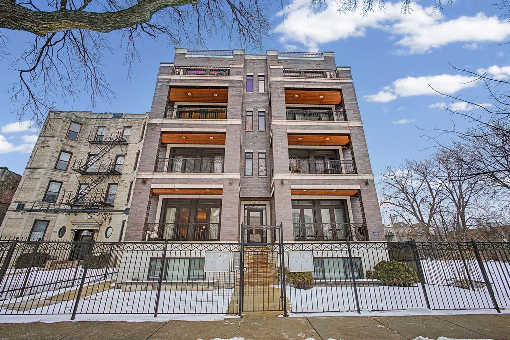 Welcome to this Stunning 3 bed, 2 bath Condo offering over 1,700 sq ft of living space! Sophisticated living in a well-maintained modern brick building (built 2009) in Woodlawn. This Sun-filled unit features an open concept layout with an expansive living room, electric fireplace, & sliding glass doors to private balcony. Gleaming hardwood floors throughout, & a Professional Chef's kitchen, with granite countertops, peninsula, stainless steel appliances including vented range hood and pullout microwave oven. Contemporary light fixtures, recessed lighting, and in-unit laundry for convenience. The luxurious primary suite includes a second private balcony, access via sliding glass doors, spa-inspired en-suite bath with separate dual vanities, oversized walk-in glass shower with body spray jets, soaking tub, heated ceramic tile flooring, and a large walk-in closet. One assigned parking space & storage unit included. Prime location walkable to University of Chicago, community gardens, Jackson Park, Metra station, Obama Presidential Center (projected 2026 opening), Hyde Park's renowned dining and shopping, and Lake Michigan beaches.