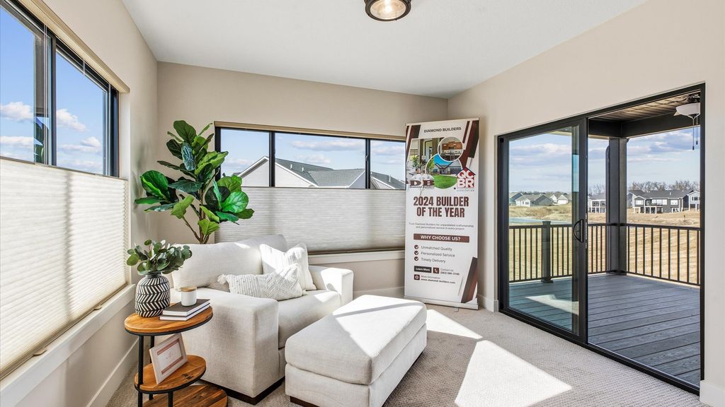 Gorgeous Model Home designed and built by one of Iowa's Premier home builders. Diamond Builders showcases their highly popular, award winning "Villa" plan with many of the available options as requested by today's new home buyers. A true zero entry home boasting 10' ceilings. Oversized windows let the sun shine in and lives large with lots of volume in the open living area. Quartz Countertops, 4 season room, Covered composite deck with aluminum railings, Well insulated exterior home and garage walls, high efficiency HVAC and trey ceilings in the owner bedroom are just a few of the benefits of new construction. The concrete basement is framed for future finish with bathroom piping roughed in. Come choose the options and let Diamond build on your lot or theirs. Complete home packages start at $409,000. Contact the listing agent for a private showing.