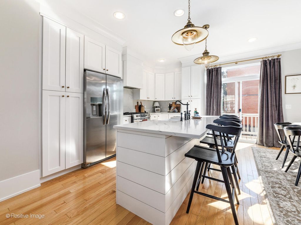 Completely Remodeled in 2021 and impeccably maintained end-unit townhome in the desirable Park Ridge Place community, a gated community of townhomes. Offering over 2000 square feet of living space; 4 bedrooms and 2 1/2 bathrooms over 3 levels with attached 2 car garage. Stunning kitchen is well-appointed with solid wood white cabinetry, quartz countertops, a spacious island with breakfast bar, and stainless steel appliances. Large living room with fireplace, private deck off kitchen which is perfect for morning coffee, grilling or outdoor dining. Perfectly positioned dining room and powder room on main floor. Second floor offers the spacious primary bedroom featuring vaulted ceilings, excellent natural light,ensuite master bathroom and walk-in closet. Two more additional guest bedrooms are well-sized and thoughtfully finished, and the updated guest bathroom include granite countertops, double vanities, and modern fixtures. This home offers a bright, open floor plan with windows on three sides, providing abundant natural light throughout. The main level features hardwood floors, recessed lighting, upgraded millwork, custom lighting, and a gas fireplace, with seamless flow between the living, dining, and upgraded kitchen areas-ideal for everyday living and entertaining. The finished lower-level flex space offers excellent versatility and is ideal for the 4th bedroom, home office, family room, or guest area. There is a washer and dryer, along with an attached two-car garage. Ideally located near Chippewa Woods Forest Preserve, top-rated Park Ridge schools, vibrant downtown dining, Metra access, the Blue Line, and O'Hare Airport. A move-in-ready opportunity combining low-maintenance living, thoughtful upgrades, and an exceptional location.
