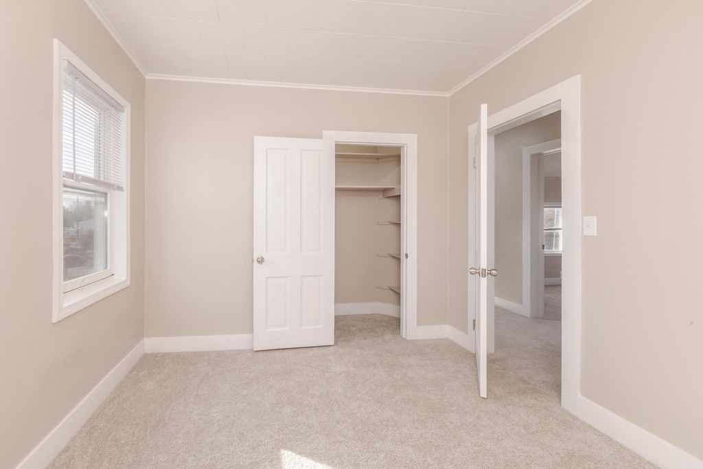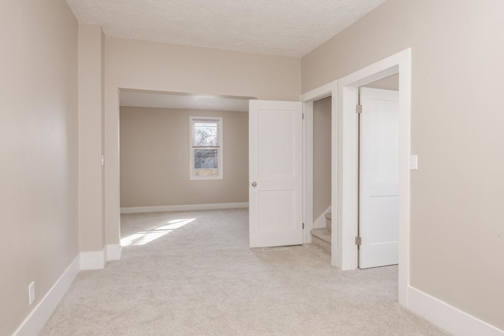 Move right into this nicely updated 4-5 Bedroom 1.5 Bath home located on large double lot, .51 acres with 2 car detached garage. This home offers a front and back porch. Laundry and full bath on main floor and plenty of room to have a family room and living room on first floor or use one of them for a large spacious primary bedroom with 3 more bedrooms and half bath upstairs. All appliances stay. Newer metal roof with 40 year warranty on metal, furnace with 10 year warranty, 200 amp electrical service, basement spray foamed insulated 2025, flooring and paint updated throughout, updated baths and lighting, 2025.