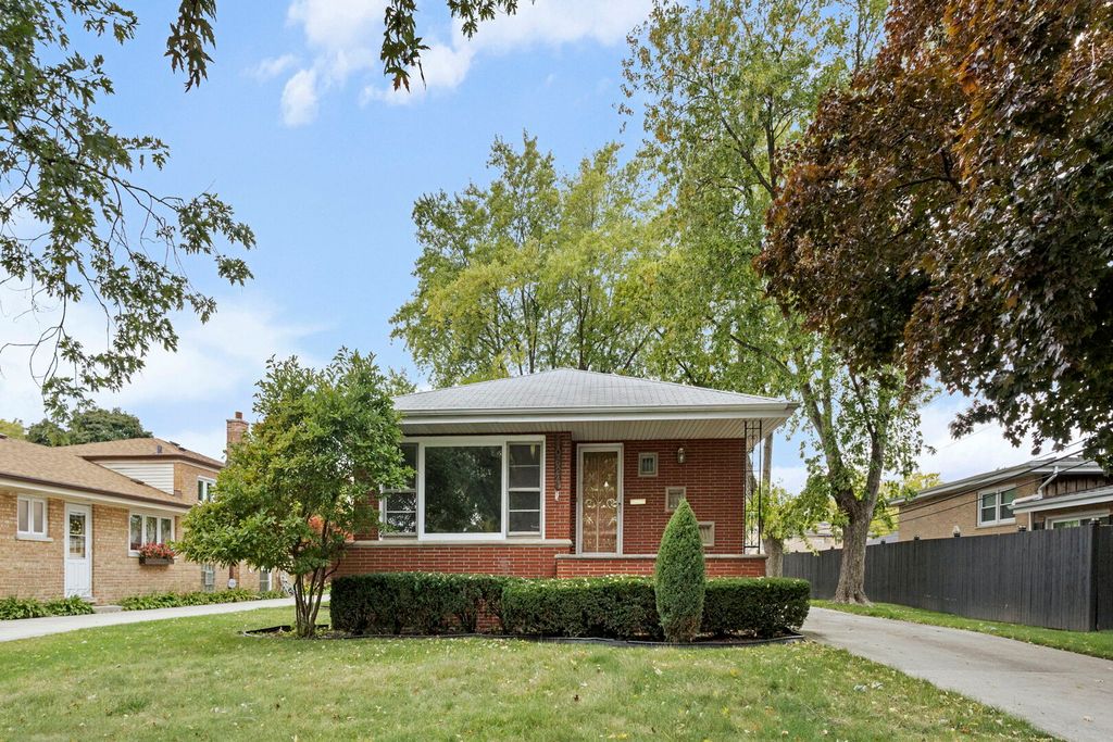 Welcome to this stunning all brick ranch home located in the heart of Oak Lawn. This home offers fantastic curb appeal with a sprawling driveway leading to a spacious 2.5 car detached garage. Step inside and you will immediately appreciate the warm and inviting atmosphere. The home has been freshly painted throughout (October 2025). Bright and sunny spacious living room has brand new hardwood flooring, new can lighting, and beautiful crown molding, making it the perfect spot for relaxing and entertaining. The large updated eat-in kitchen features beautiful wood cabinets, new quartz countertops and backsplash, new light fixtures, new can lighting, new hardwood flooring, plenty of counter space, newer stove and microwave. You will also find a beautiful bay window in the eat-in kitchen. Three nice size bedrooms all featuring newly refinished gleaming hardwood flooring and new light fixtures. The full hallway bathroom has been beautifully remodeled. The half bathroom with a new vanity and toilet is perfect for guests, adding convenience and functionality. The full finished basement expands your living space with an open family room, complete with brand new vinyl flooring. Off the family room is a built-in bar, ideal for hosting gatherings. You'll also find an office or workout room in the basement that features new vinyl flooring. Large utility room perfect for storage and also includes a shower. Outside, enjoy a spacious yard complete with a concrete patio. A detached 2.5 car garage offers additional convenience and storage. This is the perfect opportunity to own a spacious home in a sought after location near shopping, dining, transportation, schools, parks, and more! Schedule your showing today!