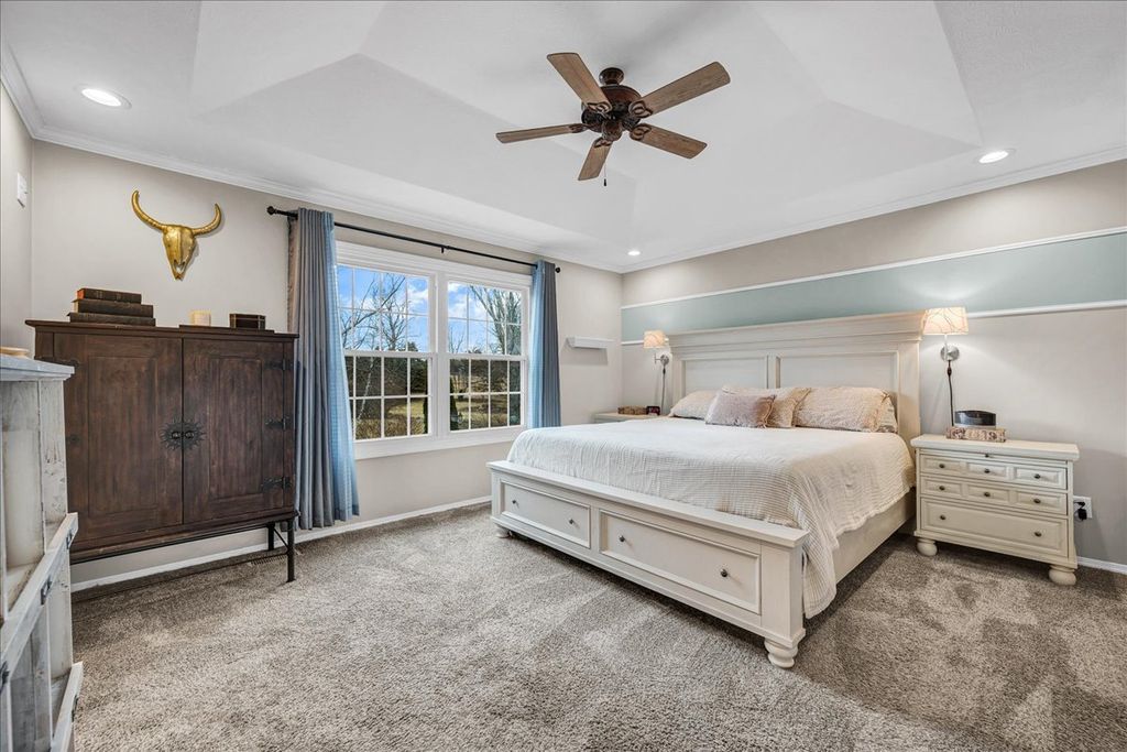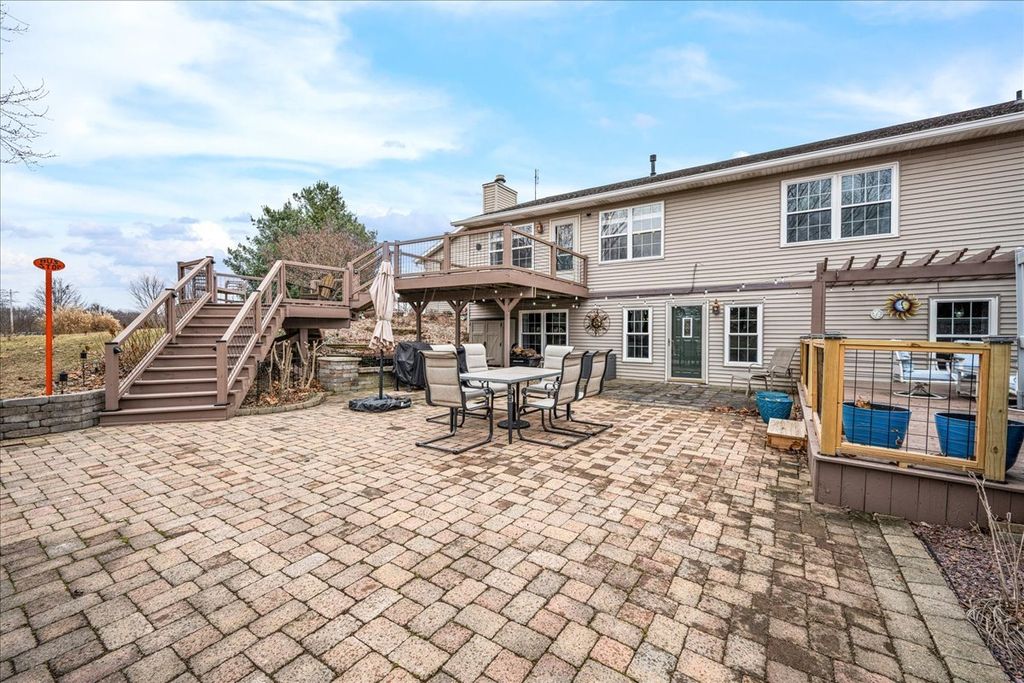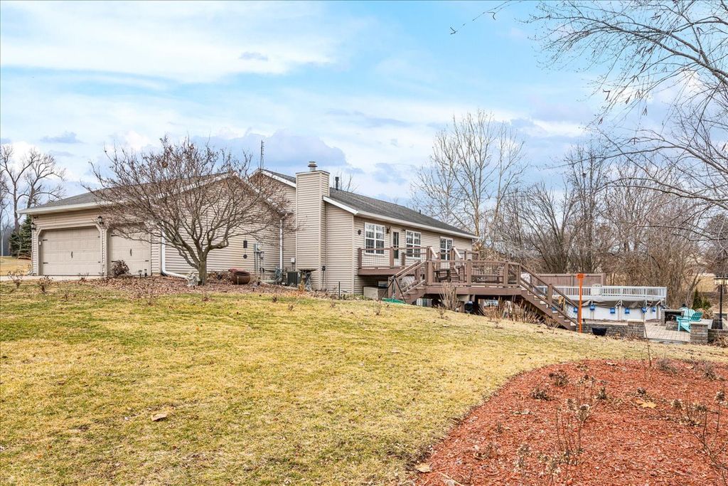 Fully updated and exceptionally maintained, this stunning walkout ranch in sought-after White Tail Ridge is truly a rare find! Situated on a private 1.40-acre lot with a breathtaking backyard oasis, this 4-bedroom, 3 full bath home offers the perfect blend of luxury, comfort, and entertaining space. Enjoy a multi-level deck with above-ground pool, sprawling paver patio with built-in firepit and dedicated firewood storage, multiple outdoor dining and gathering areas-including a pergola-covered space-creating an entertainer's dream setting. Inside, you'll find 3 spacious bedrooms on the main level and a 4th bedroom in the walkout basement, along with a beautifully updated kitchen (2022) featuring quartz countertops, backsplash, under-cabinet lighting, wood laminate flooring, a rare walk-in pantry, separate coffee center, and new refrigerator (2024). The walkout basement offers an incredible extension of living space with a huge family room, dedicated game area, spacious 4th bedroom, and full bath-perfect for guests, entertaining, or multi-generational living-and provides effortless walkout access directly to the pool and patio area for seamless indoor-outdoor enjoyment. The generous primary suite offers heated ensuite bathroom floors and a jet whirlpool tub for a true spa-like retreat. Surrounded by mature, large trees-including around the pool and patio-the property feels incredibly private and peaceful. Additional major updates include roof (2012), HVAC with humidifier (2017), new gutters and gutter guards (2024), new larger garage heater (2024), new garage opener (2024), new deck railings (2025), pool (2013) with new pump (2025), and new pool fencing (2025). Complete with a 3-car heated garage and set on a beautifully landscaped lot, this home offers space, upgrades, privacy, and lifestyle rarely found at this price point.