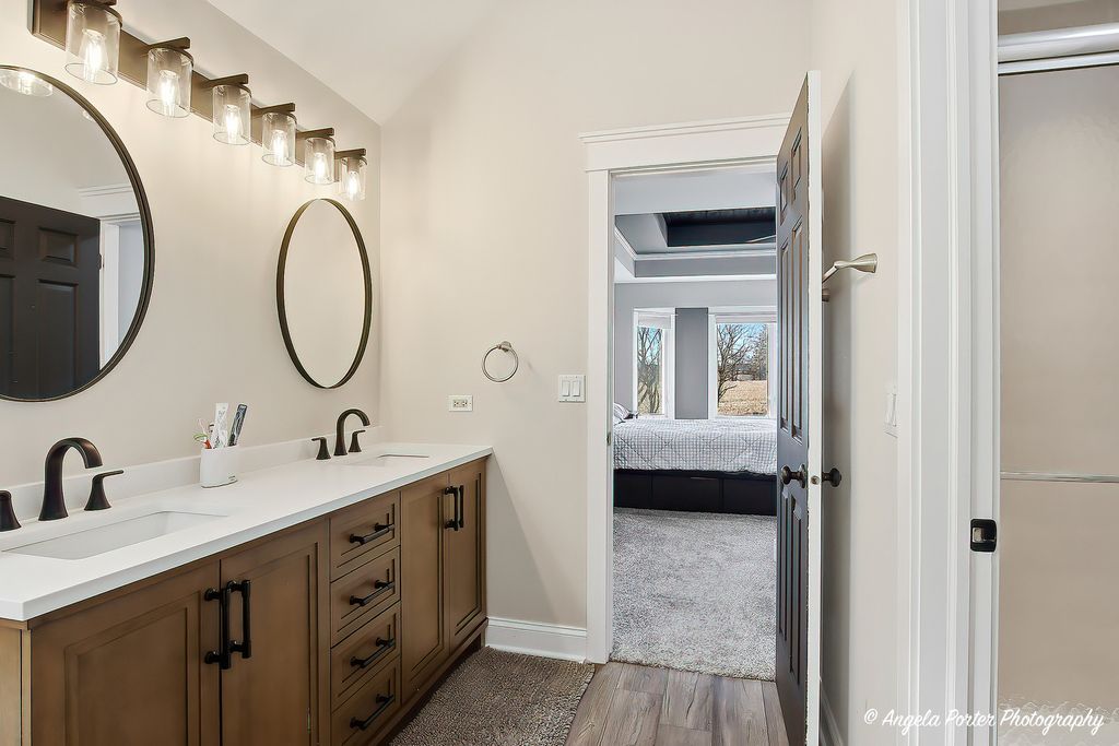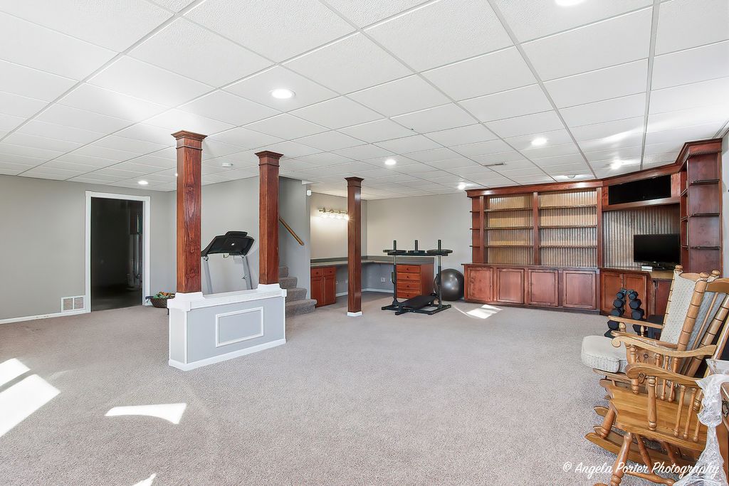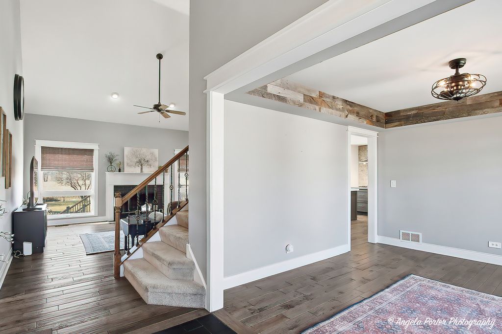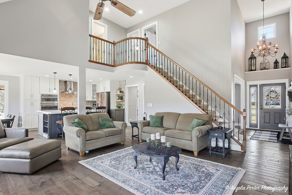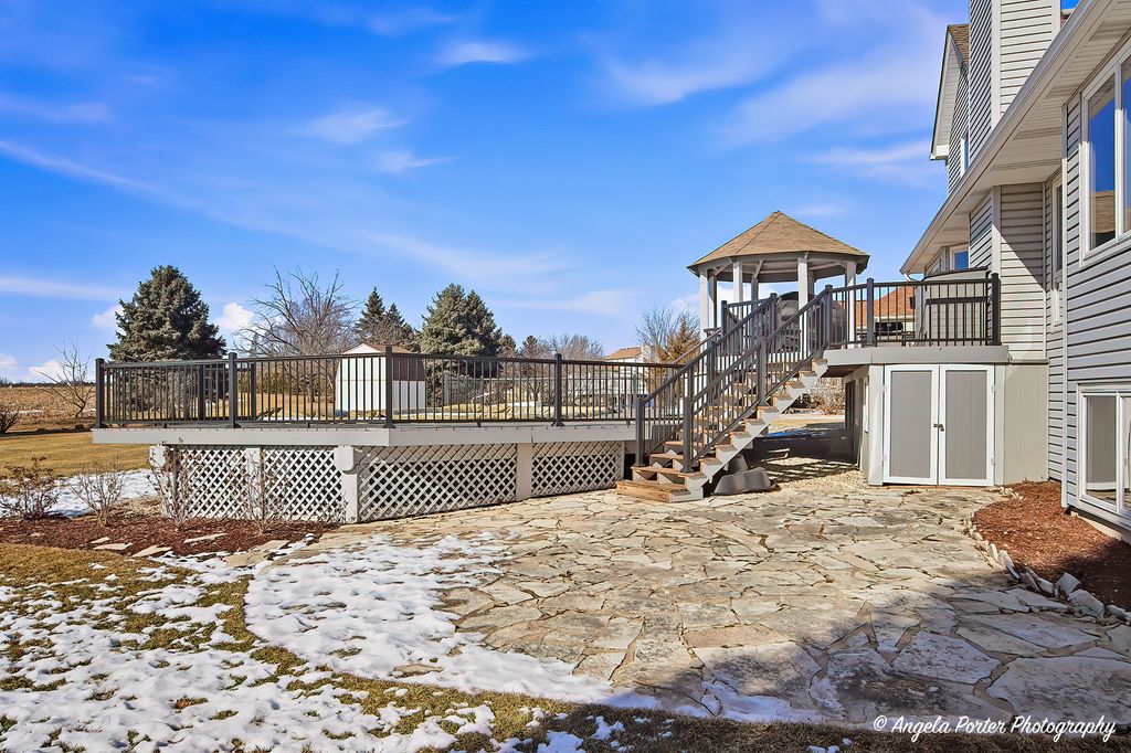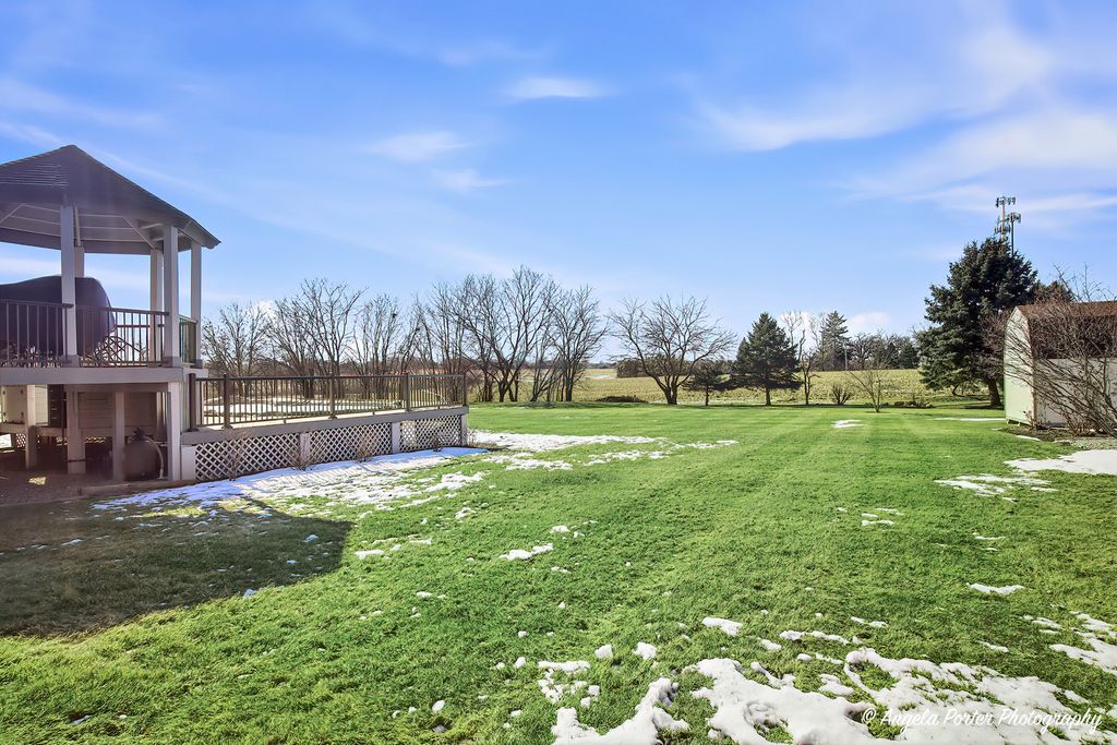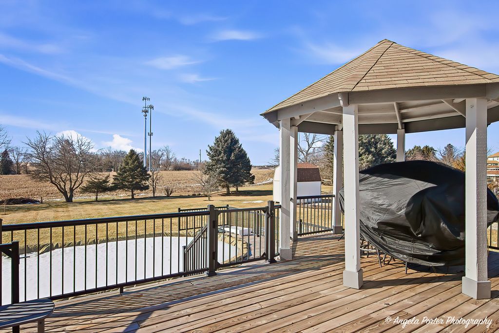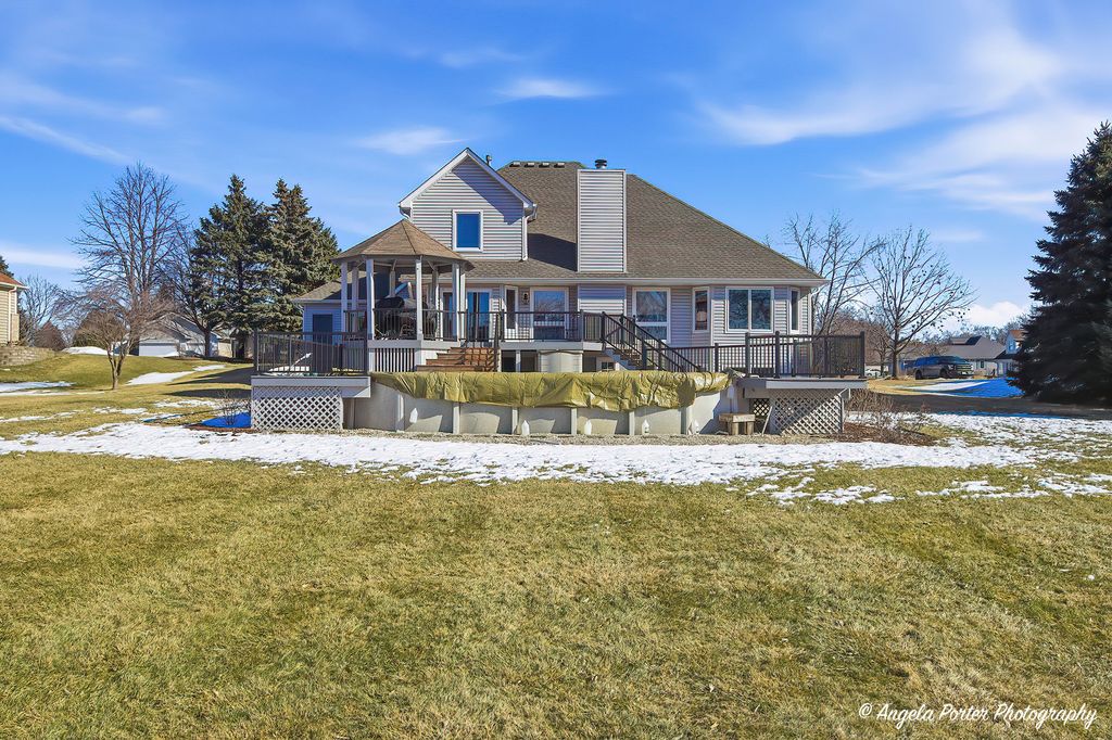 HIGHEST AND BEST DUE 2-15-26 by 8pm. Welcome home to this timeless custom 4-bedroom, 2.5-bath residence set on a beautifully landscaped 3/4-acre private lot. Lovingly maintained and truly move in ready, this home offers exceptional curb appeal and a layout designed for comfortable everyday living and effortless entertaining. Step inside to find an open, airy floor plan with polished hardwood floors and fresh, on trend decor. The dramatic great room features soaring ceilings, a cozy fireplace, and a charming "Rapunzel" balcony overlook, adding architectural character and warmth. Wrought iron spindles and premium doors and trim throughout enhance the home's custom craftsmanship. The kitchen is both stylish and functional, showcasing a mixture of cabinet colors, soft-close doors and drawers, a custom backsplash, farmhouse sink, Bosch cooktop, and ample workspace. A breakfast bar and sunny breakfast nook provide flexible seating for casual meals or gatherings. The first floor primary suite offers convenience and comfort with a tray ceiling, bay windows, and a private ensuite bath w/jacuzzi tub and seperate shower. Upstairs bedrooms are generously sized and thoughtfully positioned.The finished English basement adds incredible living space with custom built-ins, a craft room, recreation area, and abundant storage, ideal for hobbies, entertaining, or a home office setup. Outdoor living is just as impressive with a large deck, gazebo, and pool,perfect for summer fun. The private backyard is surrounded by mature trees and perennial gardens and includes raised garden beds, a flagstone patio, deck and peaceful sunset views.