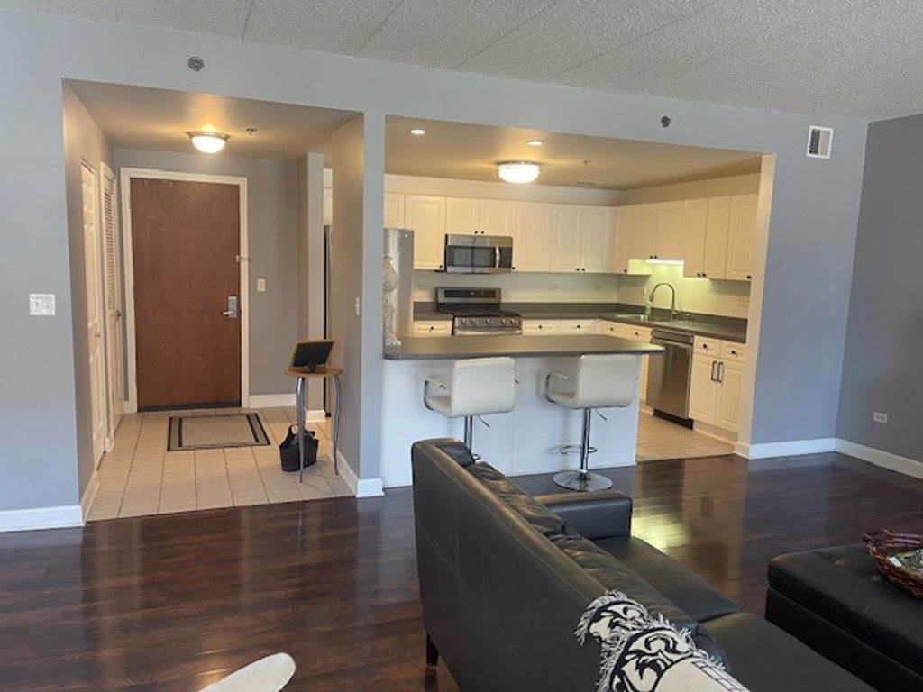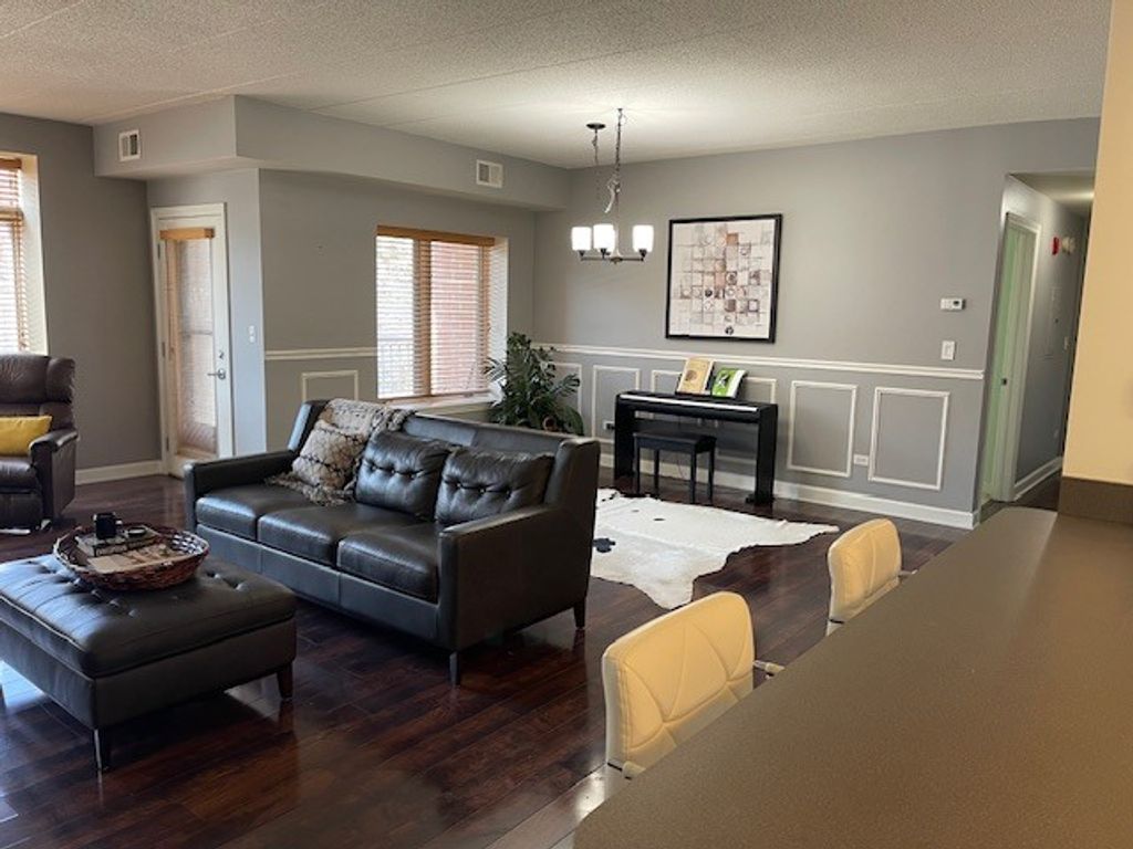 Welcome to Fountain Square-where comfort, elegance, and convenience come together to create an exceptional place to call home. This rare, beautifully appointed 2-bedroom, 2 bath condominium on the second floor offers an impressive 1,569 square feet of thoughtfully designed, open concept living space-highlighted by a stunning courtyard view that sets the tone for tranquility and charm. From the moment you enter, the home's sleek, sophisticated design is unmistakable. The expansive great room features engineered wood flooring, walls of windows dressed in custom blinds, and a designer light fixture. At the heart of the home lies a spacious and stylish kitchen, showcasing white cabinetry with premium hardware, LG - stainless steel appliances, and an oversized peninsula that doubles as the perfect breakfast bar-ideal for morning coffee, casual dining, or gathering with friends. The open-concept living and dining area provides the perfect backdrop for entertaining, enhanced by abundant natural light and a custom door leading to a covered patio-your own private spot for grilling or unwinding outdoors. Your luxurious primary suite offers a serene retreat, complete with a generous walk-in closet. The adjoining spa inspired bathroom features a double vanity, soaking tub, separate glass shower, and one of two linen closets-creating a peaceful oasis designed for relaxation. A newer full-size washer and dryer add comfort and convenience to everyday living. Located in an elevator building, this residence also includes an assigned garage parking space (#43) which is located very close to the elevator and a secure storage cage just steps from the elevator. Ample outdoor parking ensures guests always feel welcome. Enjoy enhanced peace of mind with Pella windows throughout and six-building surveillance cameras, all within a pet-friendly community that embraces your four-legged companions. Perfectly positioned in the heart of the Lombard/Oak Brook corridor, Fountain Square offers unbeatable access to acclaimed restaurants, boutique shopping, major hospitals, airports, and the expressways that connect you to all of Chicagoland. This condominium is more than a home-it's a lifestyle, enriched by a long list of tasteful upgrades and the serene beauty of a meticulously landscaped courtyard. Welcome home to Fountain Square-where elegance meets everyday ease.