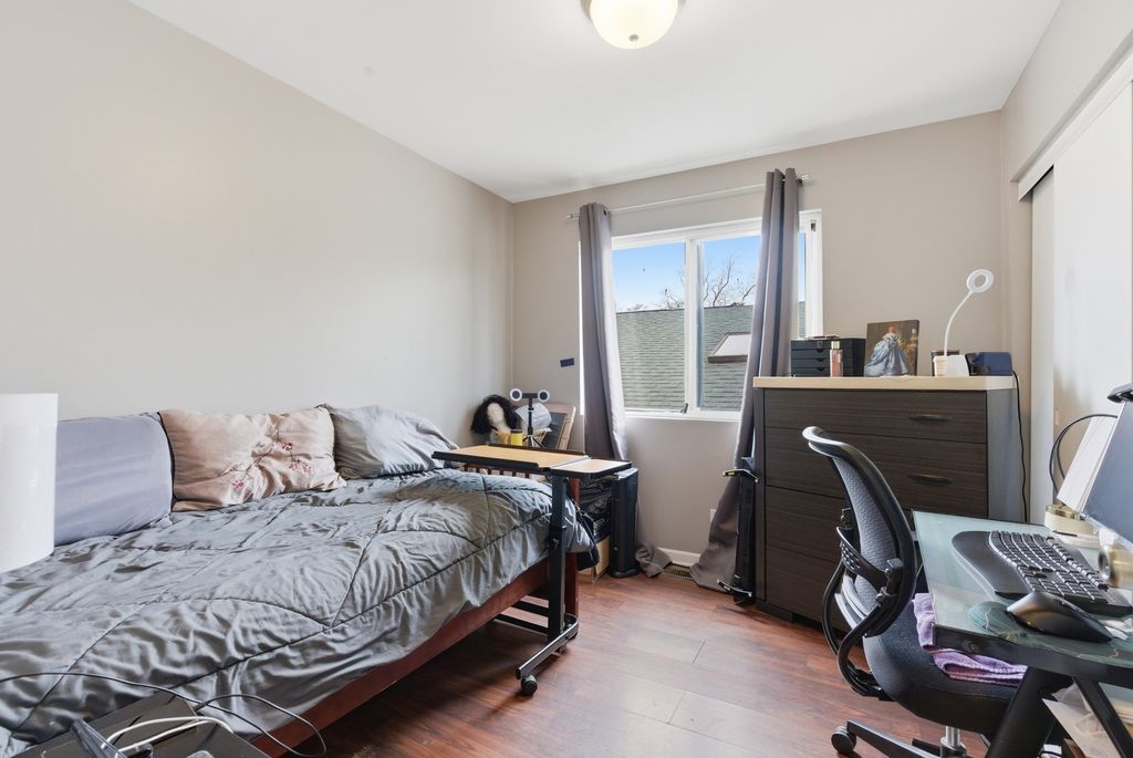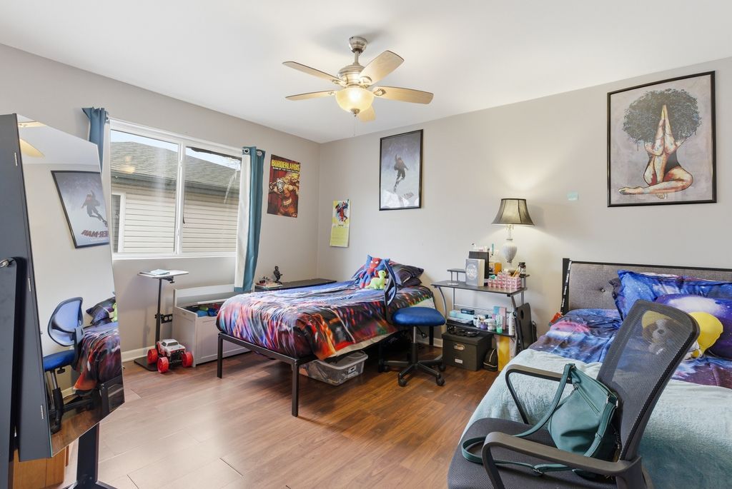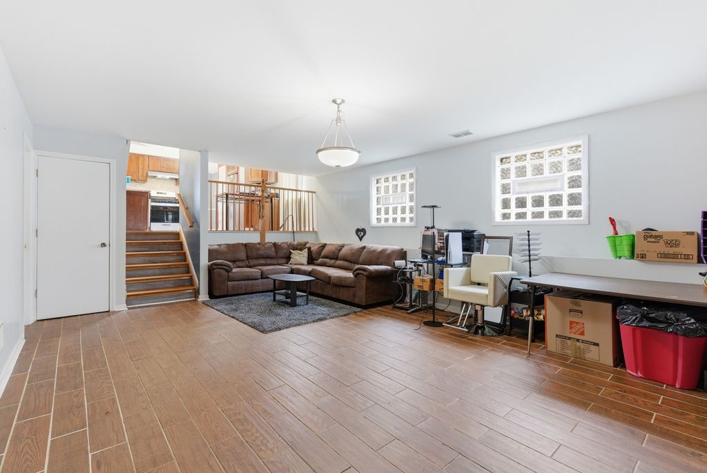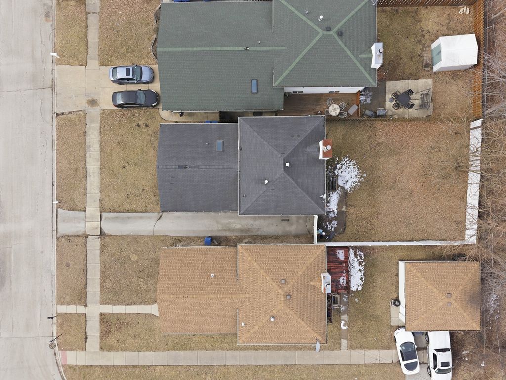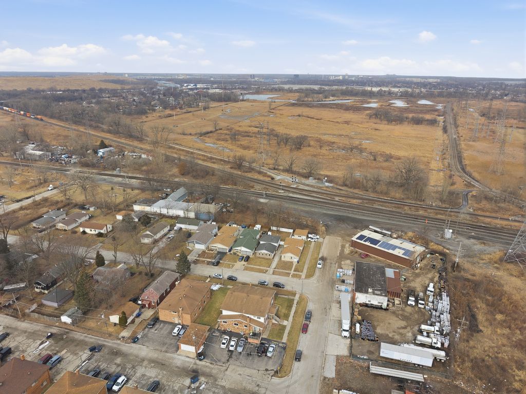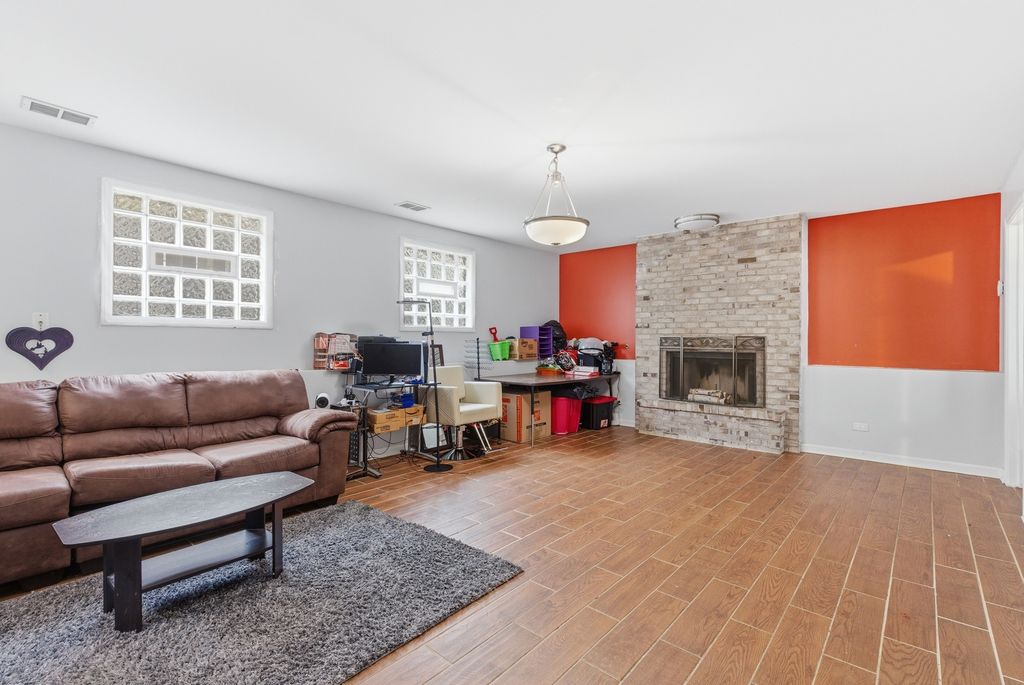 Welcome to one of Burnham, IL's finest contemporary split-level homes, offering custom design details, modern finishes, and exceptional space throughout. This beautifully updated 3-bedroom, 2-bathroom home in Burnham is move-in ready and designed to impress. A secured front gate opens to an asphalt side driveway with parking for up to 3 vehicles - perfect for convenience and privacy. Step inside to soaring vaulted ceilings and stunning hardwood floors flowing through the foyer, living room, and dining room. The living area features a stylish bar-top counter with seating, creating the perfect entertaining space. The spacious kitchen showcases marble flooring, a marble backsplash, granite countertops, abundant custom cabinetry, stainless steel appliances (1 year old) and a skylight that fills the space with natural light. The lower level offers a warm and inviting family room with a gas-starter brick fireplace and elegant travertine flooring, along with a full bathroom and an oversized laundry/utility room complete with wash basin and additional crawl space storage. Upstairs, modern glass insert railings lead to three generously sized bedrooms with wood laminate flooring. The spacious primary bedroom features a sliding door that opens to a private balcony overlooking the newly installed white vinyl fenced yard. This home offers convenient access to highways, shopping, and nearby communities. MUST SEE!