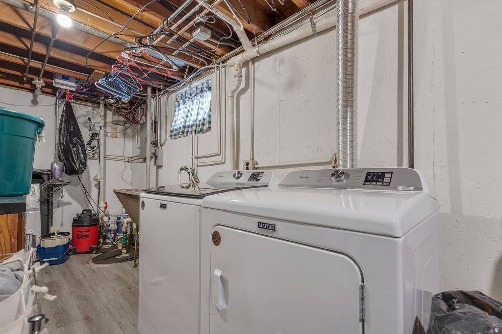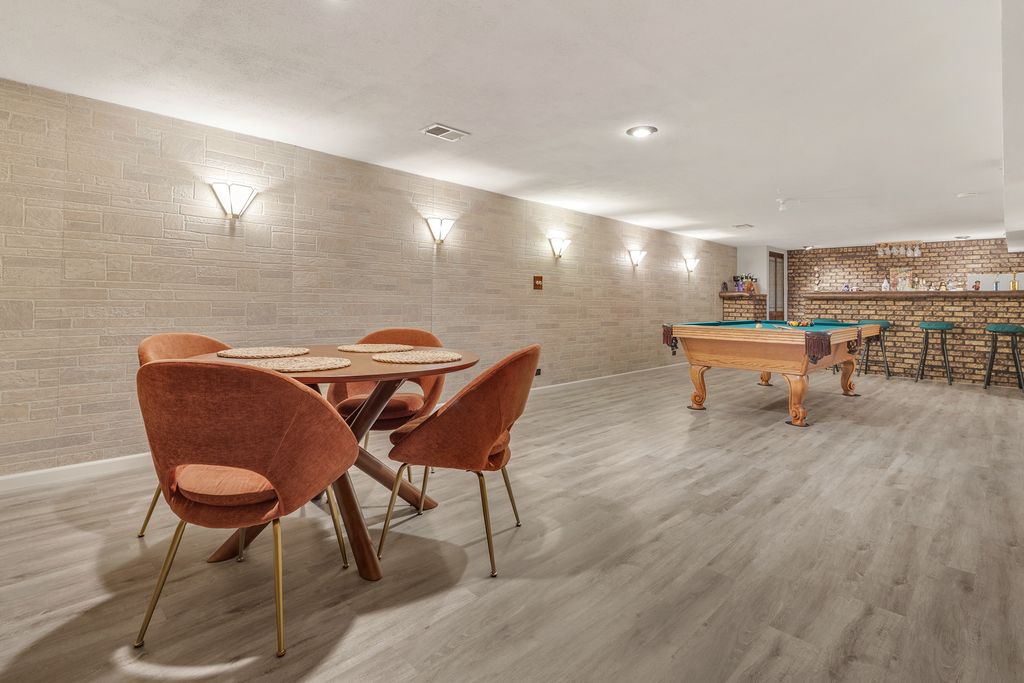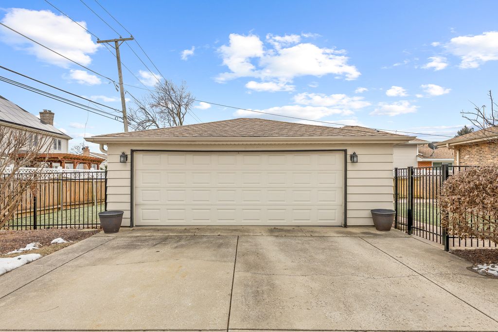 Beautiful, all-brick home lovingly maintained and thoughtfully updated by the same owner for the past 30 years, offering a seamless, move-in-ready experience. Situated on a beautiful corner lot with timeless curb appeal, the setting blends neighborhood charm with everyday convenience; just minutes from parks, schools, transportation, dining, shopping, and entertainment. The professionally landscaped yard is a standout, featuring brick paver walkways and patio, a new wood deck (2025) and black aluminum fence (2025), along with gorgeous mature trees and plantings that create a welcoming outdoor retreat. Inside, beautiful hardwood floors, bright neutral paint, and newer windows and doors, provide a light and inviting feel throughout. The primary bedroom features two closets and a private half bath, providing comfort and functionality. The kitchen is equipped with quality stainless steel appliances (2 yrs old). Downstairs you will find a finished basement (updated 2021) offering exceptional additional living space with a wet bar, large rec room, and family room with fireplace. A pool table in excellent condition is included. The basement also has a spacious utility room, providing storage space and a dedicated laundry area with newer washer and dryer (2 yrs old). Additional recent updates include new window screens on the whole house (2025), fireplace chimney chute replaced and exterior redone (2 yrs), furnace (2017), water heater (2021), and a roof with 30-year shingles on both the house and garage, along with gutters and soffits (2011). An oversized two-car garage and large concrete driveway provide ample parking, rounding out a home that has been lovingly cared for and is ready for its next chapter. A must-see, schedule your showing today!