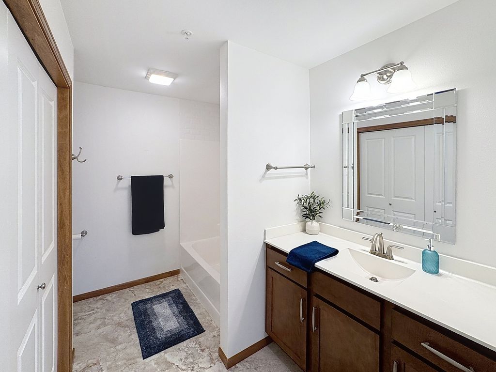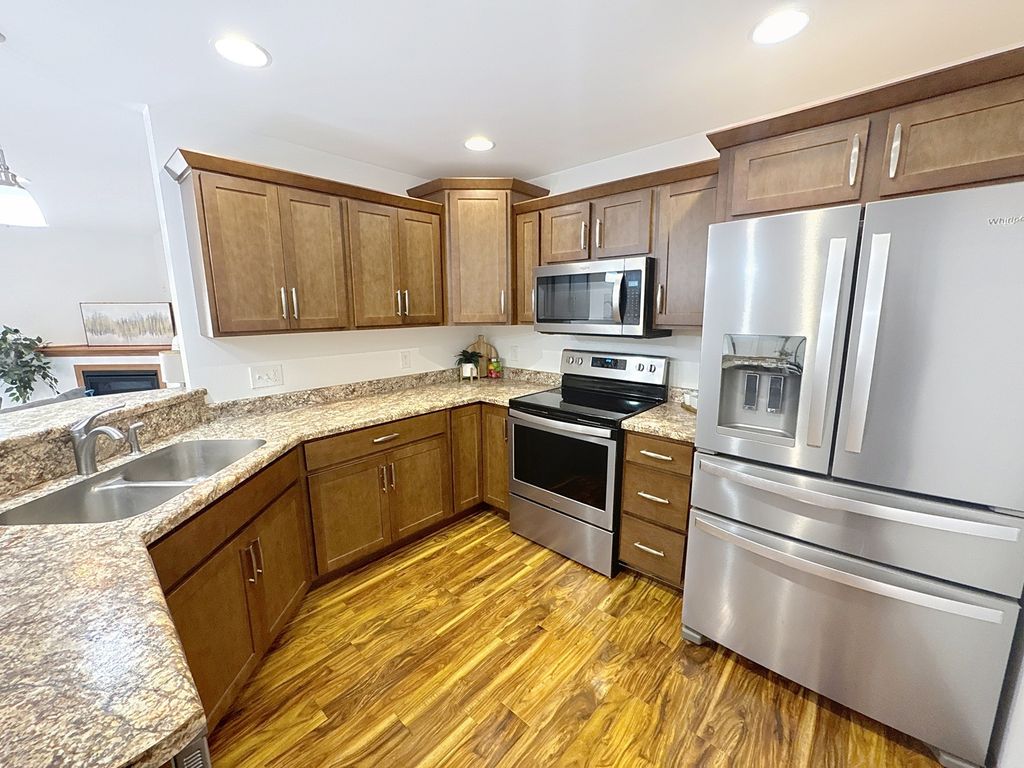 A great 2-bed, 2-bath main-level condo in Eldridge offers comfort, convenience, and modern style. Located on the 1st floor, this home features an open-concept kitchen and living room with stainless steel appliances, breakfast bar with seating, and a dining area. The living room includes a cozy corner gas fireplace and access to a patio with a storage closet. The primary bedroom has a walk-in closet and en suite bathroom. An additional bedroom and full bath off the hall. An attached two-car garage is included. HOA covers snow removal, mowing, garbage, and upkeep of common areas. Nestled in the heart of Eldridge near local amenities and North Scott schools. Come see it today! Seller is a REALTOR Licensed in IA & IL.