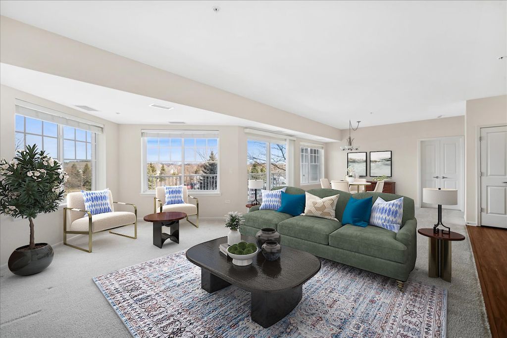 The Lodge of Northbrook is an inviting, independent senior community designed for residents aged 55 and older. Experience the spacious Red Oak floor plan, encompassing 1458 sq. ft. of well-thought-out living space. This unit features two bedrooms and two baths, tailored to meet your every need. Enjoy the benefits of a conveniently located second-floor unit, complete with an east-facing large private balcony that floods your home with natural light. The kitchen is a chef's dream, showcasing stainless steel appliances,with an upgraded side-by-side refrigerator, stunning granite countertops, and a generous 8-foot island. You'll love the convenient pull-out drawers and ample cabinet space for all your storage needs. The unit is well-situated with easy accessibility to the elevator. Start each day with a complimentary continental breakfast prepared by our in-house chef, served Monday through Friday in the first-floor dining room. The open floor plan beautifully connects the kitchen, living, and dining areas, making it perfect for both relaxation and entertaining. The primary bedroom features a large walk-in closet and an ensuite bath equipped with a handicapped-accessible shower for added comfort. The spacious second bedroom is situated on the opposite side of the unit for enhanced privacy, featuring its own walk-in closet and a full bath with a tub and shower combo. Practicality meets convenience with a utility room that includes a full-size washer and dryer, plus additional cabinet storage. Your unit also comes with one extra-long parking spot also steps from the elevator in a heated garage and an extra fully-finished storage locker on the same floor close to the unit. Enjoy the vibrant Lodge of Northbrook lifestyle with a variety of onsite amenities, including dining options, a wellness center, fitness equipment, a workshop, beauty salon, community rooms for card groups, a walking path, and an outdoor patio. Engage in fun activities organized by our resident lifestyles director and take advantage of complimentary transportation within an 8-mile radius, available Monday to Friday from 8:00 AM to 4:30 PM. The Lodge's recently updated common areas offer a warm and welcoming feel. The monthly assessment covers all essentials: property taxes, common insurance, utilities, internet, expanded basic cable, front desk concierge ensuring security and comprehensive maintenance both inside and out. Just call the maintenance team for any repairs, even for changing a light bulb. Income qualification is required for residency. For further details, visit the Lodge of Northbrook website. Additionally, the seller is offering a standard carpet allowance to be applied towards flooring of the buyer's choice.