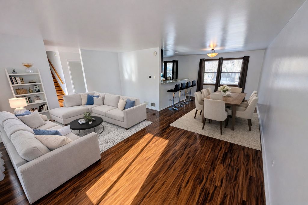 Exquisite 4 bedroom 2 full bath home where luxury meets space! Plenty of room here with 4 bedrooms (2 with walk in closets), expansive bath with double sink, dining and living rooms seamlessly flowing into the beautiful gourmet kitchen with stainless steel appliances and 42 in cabinets. Also, a 2nd living room with a cozy fireplace hosting french doors that lead to the outside deck nestling cozily in the super sized back yard. As if that's not enough, the basement area has more family space equipped with separate storage and laundry rooms. Home being sold AS-IS. Come add your touch to this best bang for your buck home that is sure to give you luxury for less!