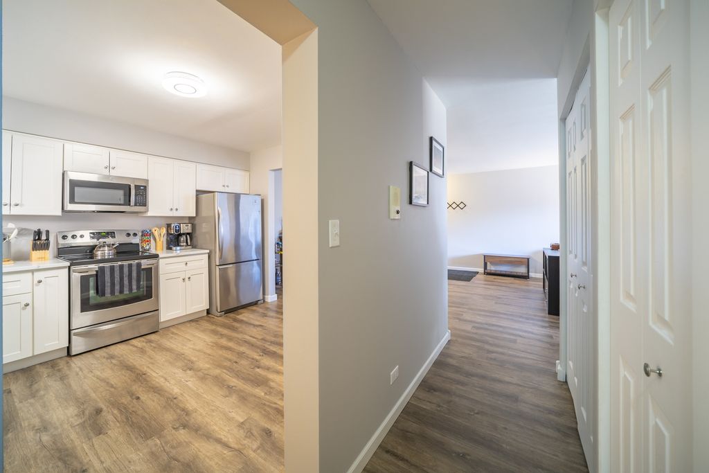 Rarely available second-floor condo in popular Farmingdale Terrace featuring 2 bedrooms and 2 full baths. Beautifully updated with all-new flooring, new windows, and an HVAC system that is a little over one year old. Updated eat-in kitchen offers new countertops, new cabinetry, and stainless steel appliances, opening to the dining and living area with access to a private balcony. Spacious primary bedroom includes a full ensuite bath and walk-in closet, plus a second generously sized bedroom and full hall bath. Brand-new in-unit washer and dryer combo. Secure entry to the building with heated underground garage parking. Additionally, there is a storage, bike room, extra laundry facilities, and outdoor pool. Convenient location near schools, parks, shopping, dining, and expressways. Truly move-in ready.