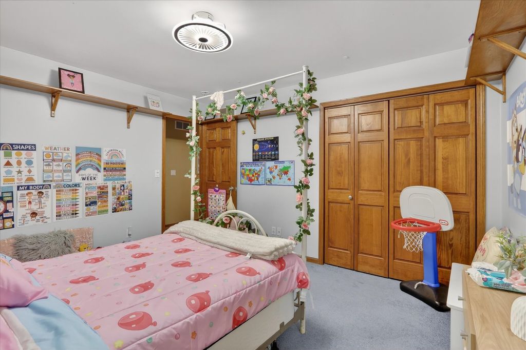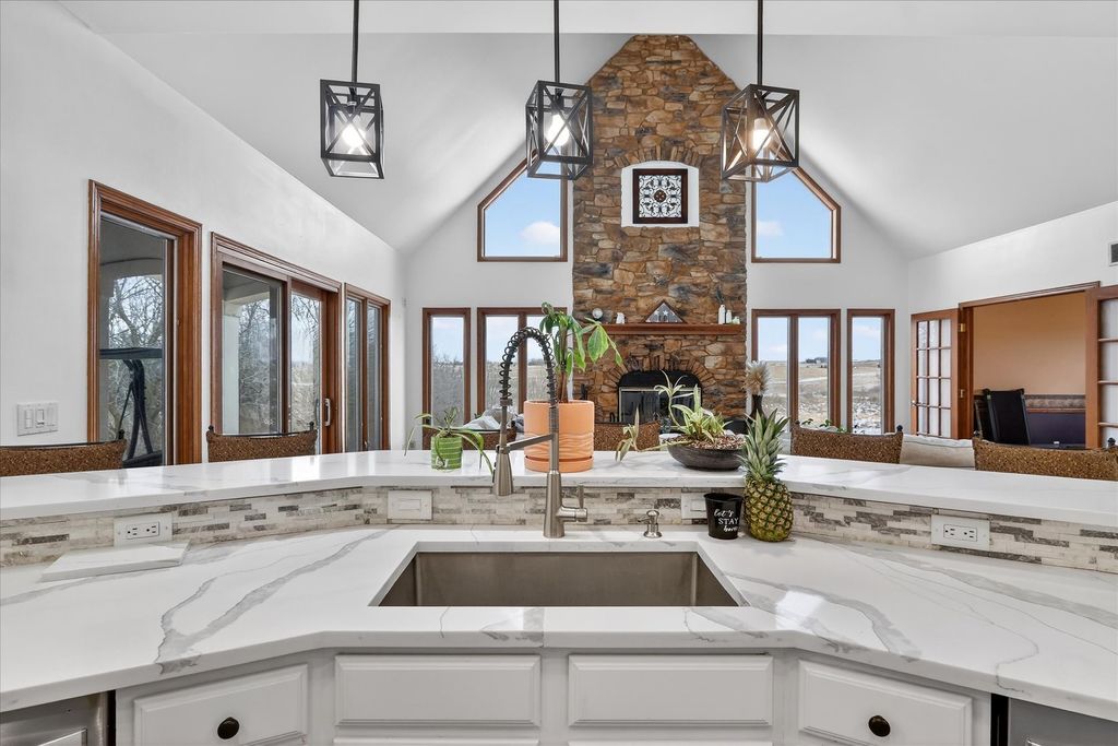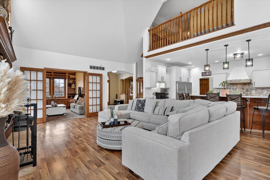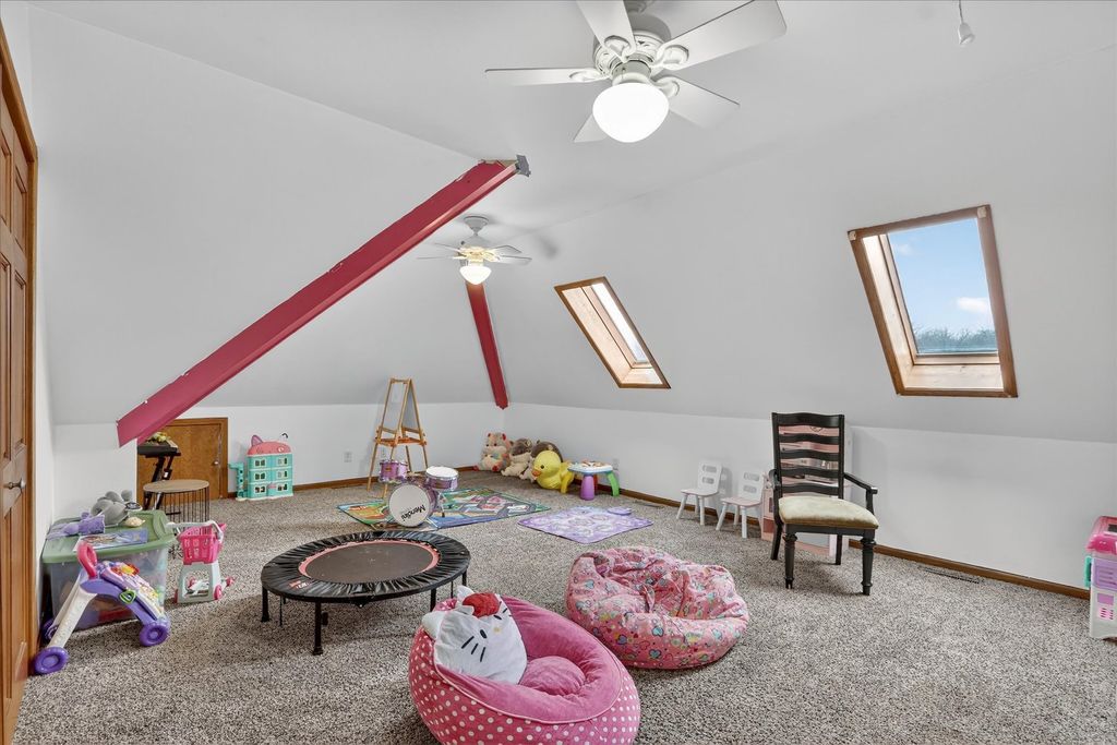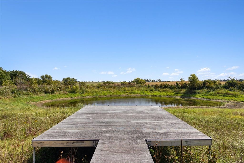 Welcome to 638 W Cedarville Rd, Freeport, IL - a breathtaking 5-bedroom, 3.5-bath estate offering privacy, luxury, and panoramic views in every direction. Built in 2003 and situated on over 27 scenic acres, this remarkable property features a large pond with dock, rolling fields, and mature woodlands - the perfect blend of natural beauty and peaceful seclusion. Inside, you'll find a spacious open floor plan highlighted by a stunning stone fireplace and a large modern eat-in kitchen with updated appliances and a four-filter water filtration system. The main floor flooring recently replaced with beautiful wood, adding warmth and elegance throughout the primary living spaces. The main-level master suite offers convenience and comfort, complete with a walk-in closet, jacuzzi tub, new custom shower. The walk-out lower level has been recently renovated and is designed for entertaining, featuring a home theater, two additional rooms, and a full bathroom, with direct access to the garden area. Just off the main living space, enjoy a peaceful patio ideal for relaxing or outdoor dining. A newly added sauna located off the back patio provides the perfect retreat to unwind. Outdoor amenities continue with a sand volleyball court, maintained walking trails through the woods, approximately 12 acres of pasture and woodland, and 9 acres currently rented agricultural land. The seller receives approximately $2,000 per year from the farmer who also assists with driveway plowing as part of their agreement. A spacious 3-car garage provides plenty of storage and parking. This property offers the serenity of country living with easy access to major cities. A rare opportunity to own a private retreat and endless possibilities.
