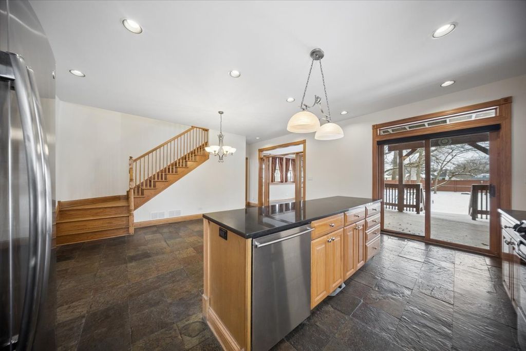 One-of-a-kind, unique property centrally located in the Heart of Roselle! Step into a bright, open living and dining area featuring vaulted ceilings, hardwood floors, and a natural gas fireplace perfect for everyday living and entertaining. The Social Kitchen serves as the heart of the home, ideal for gathering with friends and family. Just off the main living space, the sunroom offers a peaceful retreat perfect for morning coffee, reading, or relaxing while enjoying the view. The main level also includes a bedroom, full bath, and laundry room for added convenience. Upstairs, the spacious Primary Suite boasts hardwood floors, a second fireplace, an amazing ensuite bathroom, a walk-in closet, and your very own private upper deck, a perfect escape at the end of the day. You'll love the expansive deep-pour basement, offering abundant storage space with plenty of room to finish to your liking. Outside, enjoy the covered deck, ideal for relaxing and watching the wildlife pass through and whole house generator. And here's where this home truly stands out: a rare four-stall heated tandem garage with extra-high ceilings, perfect for vehicles, hobbies, and all your outdoor toys. Plus, the property includes a separate one bedroom heated guest house with kitchen and full bath ideal for guests, related living, a home office, or rental possibilities. All this with easy access to restaurants, shopping, the Metra train station, and Lynfred Winery. This unique Roselle home truly offers space, flexibility, and lifestyle and is one you won't want to miss!