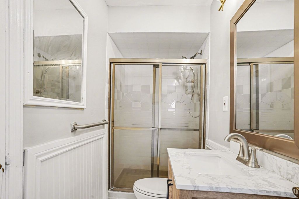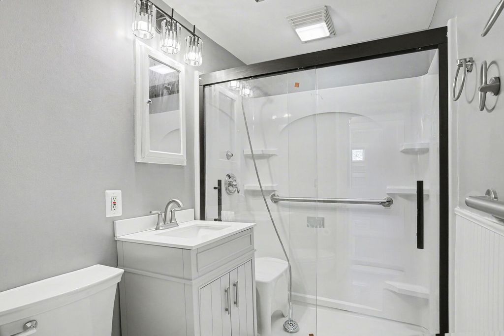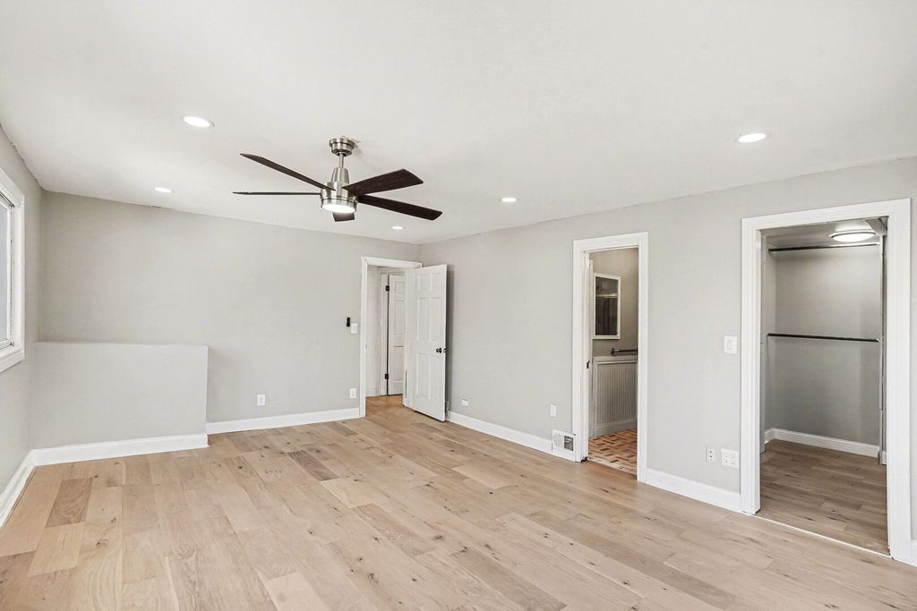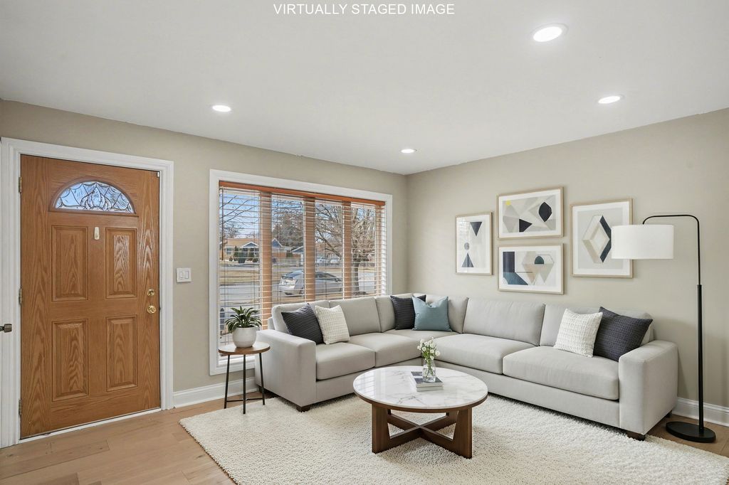 Welcome home! This brick ranch has been fully updated & offers a second story addition for extra comfort! Featuring a two-story addition with real hardwood throughout, this home provides the perfect blend of space and flexibility. With a primary suite upstairs, and multiple first floor bedrooms, this home checks all the boxes. Enjoy the bright kitchen with new oversized cabinets, high-tier island, and 2025 appliances. The driveway leads to a spacious 2.5-car garage (25x23), featuring two overhead doors, and tons of storage space. Located just down the street from the train station and tons of local options, come check this home out today!