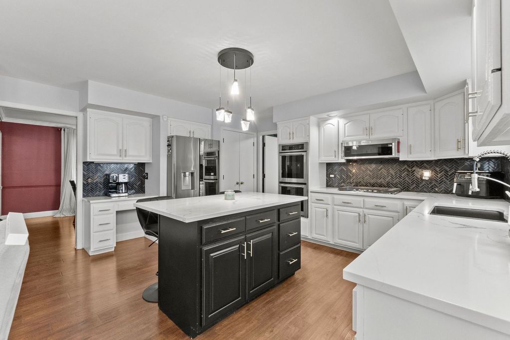 A move-in ready home in Lansing's sought-after Whitman Woods, where space, privacy, and everyday comfort come together. Tucked away on a quiet cul-de-sac, this modern sunfilled home delivers over 3,000 sq ft of updated living space, offering flexibility, comfort, and value that truly stand out from the rest. Priced below recent appraised value, this home presents an exceptional opportunity for instant equity. Previous contracts fell through due to buyer circumstances, not at the fault of the sellers, making this your second chance at an incredible property. Designed for the way you live today, this home easily adapts whether you're entertaining, working from home, hosting guests, or simply relaxing. Why you'll love it: ~Prime cul-de-sac location in an upscale neighborhood with quiet streets and nearby parks ~Easy Chicago commute with convenient access to local amenities ~Over 3,000 sq ft of finished, move-in ready living space, including a finished basement ~Private, fully fenced yard-an entertainer's dream. Inside, rich flooring flows throughout the spacious living and dining rooms, creating an inviting setting for gatherings of any size. The impressive eat-in kitchen is both stylish and functional, featuring a large center island, quartz countertops, sleek appliances-including a refrigerator that makes sphere ice, ideal for bourbon and cocktails-and seamlessly flows into the cozy family room with fireplace and custom shelving. A main-floor office offers ideal work-from-home space and provides flexibility for potential related living, complemented by a convenient main-floor laundry. Upstairs, you'll find generously sized bedrooms and a sprawling primary suite with a walk-in closet and a luxury bath designed for everyday comfort. The finished basement expands the living space even further with brand-new luxury vinyl plank flooring, a large rec room, a custom made and white glove installed championship regulated pool table (included), and a three-piece bar area-perfect for entertaining or relaxing. The outdoor living space is equally impressive, featuring: ~Fully fenced yard with mature trees and thoughtful landscaping ~Patio with canopy and fire pit ~Basketball court and gardening shed. Recent improvements include upgraded fixtures throughout, fresh paint, A/C, premium carpet, and a 6 ft privacy fence, offering both peace of mind and long-term value. Spacious, flexible, and inviting, this Whitman Woods home offers more space and lifestyle versatility than others you'll see-set in one of Lansing's most desirable neighborhoods. An exceptional opportunity ready for its next discerning owner, pre-approved buyers are welcome, with lender verification or a second opinion from a preferred lender coordinated upon offer acceptance to ensure a seamless transaction.