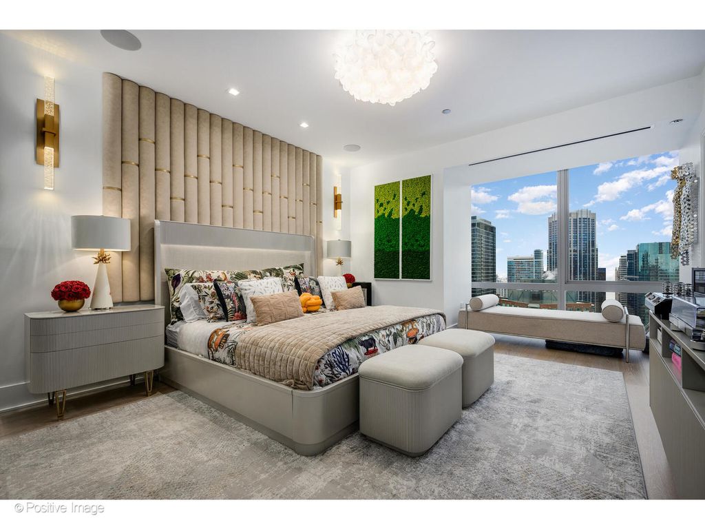 Extraordinary 4-bedroom plus office (optional 5th bedroom), 4-bath residence offering 4,831 square feet of sophisticated luxury living at the iconic St. Regis Chicago, Chicago's premier full-service residential tower. Two valet parking spots are available for an additional $100,000. This stunning home seamlessly blends five-star hotel services with the intimacy and comfort of a private residence. Thoughtfully designed and impeccably finished, the interiors showcase Italian custom built-ins, modern light fixtures from Lightology, wide-plank hardwood floors, Sonos expanded sound system, Lutron automated blind system from Intellis, and refined designer details throughout. A gracious entry gallery sets the tone, featuring custom millwork by Jesse Chicago and gallery-style wall space ideal for displaying a curated art collection. The expansive living and dining room is anchored by a bio ethanol fireplace and framed by dramatic floor-to-ceiling windows offering rare South, West, and North exposures with sweeping views of Lake Michigan, the city skyline, and unforgettable sunset vistas. This exceptional vantage point creates a breathtaking backdrop for everyday living and entertaining. Adding to the home's appeal are two distinct and dedicated living spaces, creating a truly unique and highly functional floor plan-ideal for both formal entertaining and relaxed everyday living. The secondary living area offers great flexibility such as a media lounge, family room, or private retreat. The chef's kitchen is both elegant and highly functional, appointed with Snaidero cabinetry, cantilevered stone countertops, a full Gaggenau appliance suite, and an oversized island with seating. Completely custom to this unit, a fully equipped scullery offers exceptional additional storage and prep space, including a full-size Thermador refrigerator and Sub-Zero wine/beverage center. Just beyond, a covered balcony provides the perfect setting for grilling, relaxing, and dining al fresco while enjoying skyline views. Designed for elevated entertaining, the adjacent family room features a striking wall of custom built-ins with fireplace and a custom bar with Valcucine cabinetry equipped with a New Logica system and Liebherr refrigeration drawers, complemented by a glass-enclosed, temperature-controlled wine cellar by Genuine Cellar, creating a true private lounge experience within the home. The private primary suite is a serene retreat, offering beautiful city views, two custom walk-in closets, and a spa-caliber marble bath with oversized shower, soaking tub, Kallista fixtures, heated towel bars, dual vanity, Robern medicine cabinets, and full-height stone walls. A versatile bonus room just outside the primary suite functions perfectly as a home office, library, or fifth bedroom, with a full bath conveniently located across the hall. Three additional generously sized bedrooms - (one with an Italian Murphy bed system), two bathrooms (one en-suite), and a dedicated laundry room with additional storage designed by California Closets complete the residence. Residents enjoy unparalleled access to both private condominium amenities and full St. Regis hotel services, including concierge and butler services, in-residence dining, renowned restaurants Tret Dita and Miru, indoor and outdoor pools, spa, state-of-the-art fitness and training studios, private dining room, demonstration kitchen, wine storage and tasting room, private storage, and enclosed dog exercise area. Entertaining is effortless with on-demand event support, tableware, seating, and white-glove service. Ideally located in the heart of Lake Shore East, just steps from the lakefront, world-class dining, shopping and cultural institutions. This is a rare opportunity to own a turnkey, trophy-quality residence in one of Chicago's most prestigious and sought-after addresses, offering panoramic views, a distinctive dual-living layout, five-star service, and an unmatched luxury lifestyle.