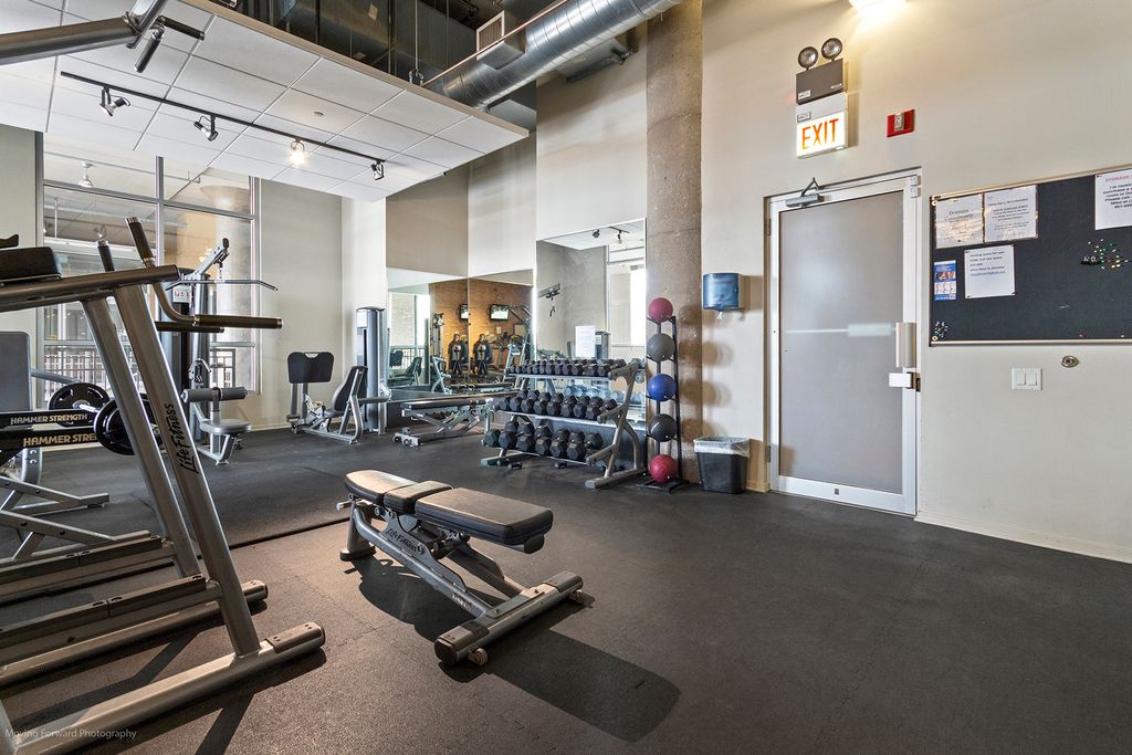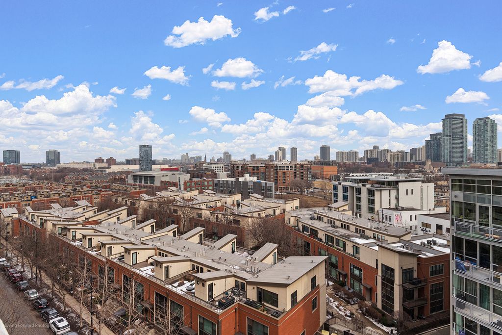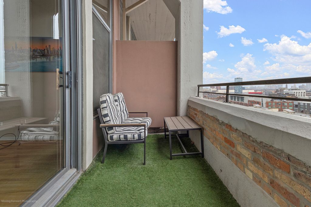 Enjoy stunning skyline views from your own private balcony~ Excellent, functional floor plan~ Harwood flooring through out~ Bedroom offers privacy glass and a wardrobe closet for a sleek, modern touch~ The spacious living area flows seamlessly into a well-appointed kitchen complete with an island/breakfast bar, exposed brick office nook, and Bosch stainless steel appliances~ In-unit laundry adds everyday convenience~ Garage parking is included (6th floor, space #238 - a fantastic, easy-to-park spot with no door dings), along with a storage cage (8th floor, #288)~ This full-amenity building offers a 24-hour doorman, rooftop deck with breathtaking views, exercise room, and party room~ Ideally located near downtown, the CTA, and right along the Chicago River, this home truly shines - especially at night when the views are simply unforgettable~