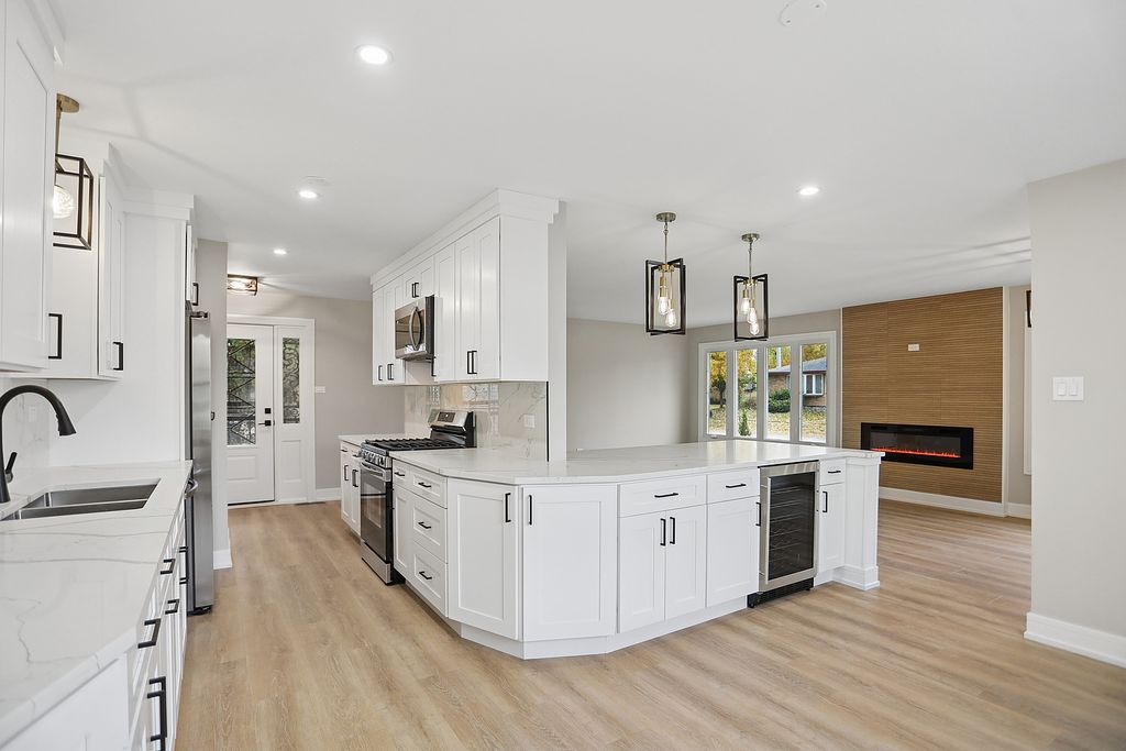 Absolutely beautiful, fully renovated, over-sized, brick split level with over 2,200 square foot of living space located on a quiet block with 4 bedrooms, 2 full bathrooms and a 1st floor powder room, finished basement with a 4th bedroom, full shower bathroom, laundry room, attached 2 car garage, attached backyard glass enclosed sunroom. Home features an open living room/kitchen concept with an amazing Kitchen with stainless steel appliances shaker white kitchen cabinets with crown molding, quarts countertops, elegant light fixtures, under counter cooler, tiled accent wall with an electric wall mounted fireplace. Spacious master bathroom with soaking tub and a double sink vanity. Conveniently located near schools, shops, restaurants, 394 expressway and 10 min away from the new Wind creek casino. The home is a must see and very tastefully designed. Schedule your showing before its gone!