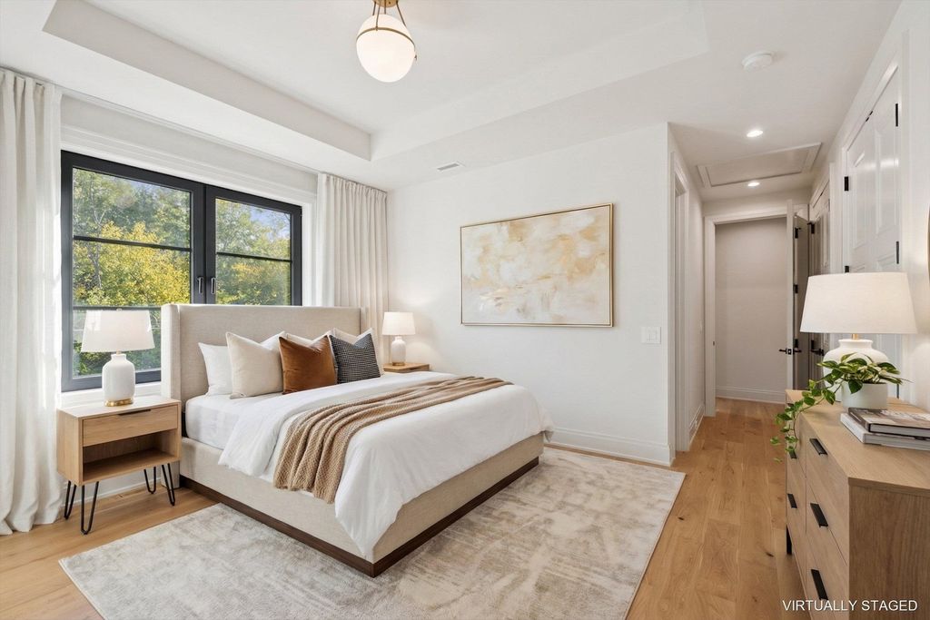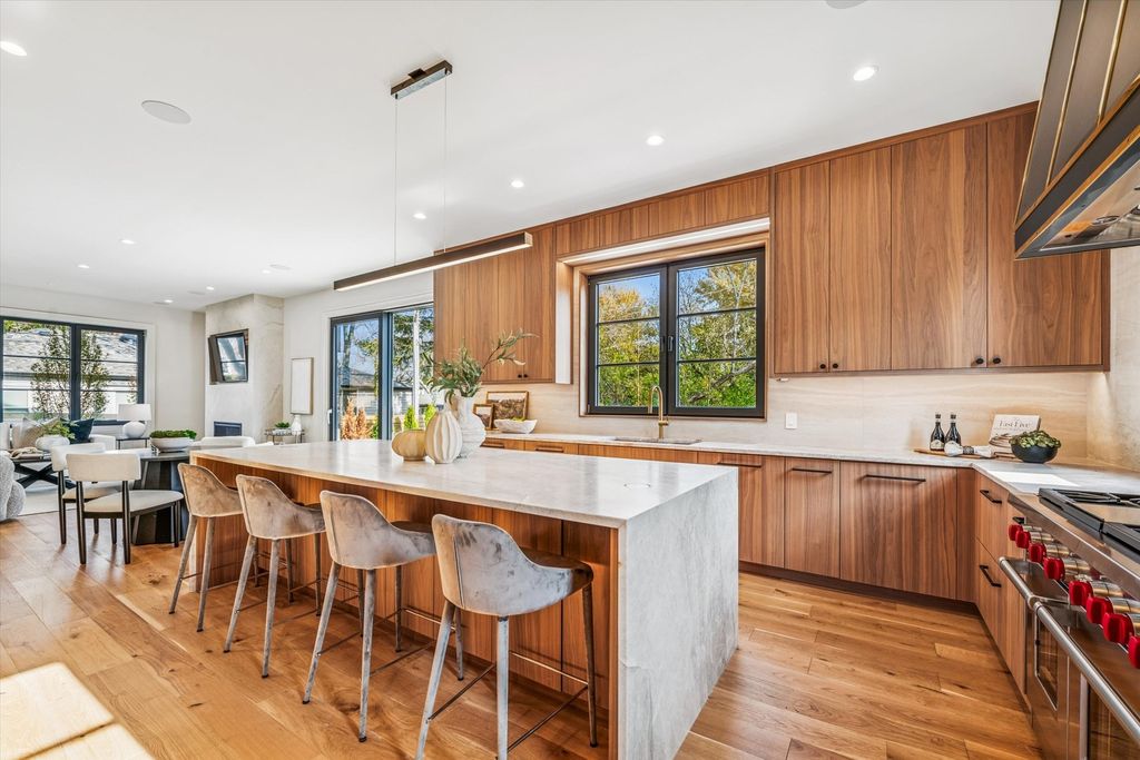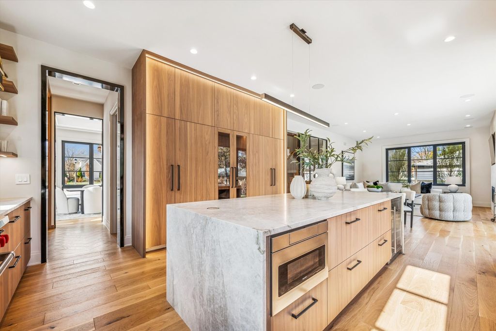 In Elmhurst's coveted Cherry Farm enclave, where tree-lined streets meet architectural artistry, a new chapter of luxury living unfolds at 377 S. Prairie Avenue. This 5,700-square-foot custom home by Bloomfield Development was designed for those who value beauty, substance, and connection-a residence where every detail feels intentional and every space invites you to live effortlessly. With seven bedrooms and six-and-a-half baths, it's a home that blends modern elegance with timeless warmth, crafted for gatherings that flow as easily as quiet mornings in the sunlight. Bathed in natural light from charcoal-framed European casement windows, the interior reveals 5-inch white oak flooring, glass-and-metal staircase dividers, and layers of custom millwork that speak to Bloomfield's meticulous craftsmanship. At the heart of the home, the chef's kitchen pairs Taj Mahal quartz countertops with waterfall edges and custom Bloomfield-designed walnut cabinetry with a Sub-Zero, Wolf, and Cove appliance suite. A striking matte-black range hood trimmed in polished gold creates a sculptural focal point, while the butler's pantry with wet bar adds hidden functionality for seamless entertaining. The kitchen flows effortlessly into the formal dining room and a living area centered on a custom stone fireplace-spaces designed for both celebration and calm. A private main-level bedroom suite offers flexibility as a guest retreat or home office, blending convenience with privacy-a thoughtful touch that adapts beautifully to changing needs. A powder room nearby serves guests during gatherings, adding convenience without interrupting the home's flow. The second level offers five spacious bedrooms, each with ensuite baths and walk-in closets, creating a rare sense of harmony and privacy throughout. The primary suite is a true sanctuary, showcasing a paneled accent wall, two expansive walk-in closets, and a spa-inspired bath with heated floors. A second-floor laundry room adds practical ease to daily life without compromising the home's refined rhythm. Downstairs, the radiant-heated lower level expands the living experience with a recreation lounge, exercise studio, and sleek wet bar with a modern wine cellar. A bedroom with a large walk-in closet completes the space-perfect for an additional guest suite, media room, or creative retreat. Every square foot was intentionally designed to deliver both comfort and versatility. Outside, bluestone pathways and professional landscaping frame a large fenced yard, ideal for outdoor entertaining or relaxed evenings under the stars. A heated three-car garage, whole-home audio pre-wiring, and energy-efficient mechanical systems complete the home's blend of innovation and timeless design. Recognized by Architectural Digest, Luxe Magazine, and Bravo TV, Bloomfield Development is celebrated for creating homes that combine enduring quality with striking beauty-a reputation built on over two decades of craftsmanship and integrity. Every detail at 377 S. Prairie Avenue was imagined for those who expect more-more light, more luxury, more connection. A custom home that's as functional as it is beautiful, ready to welcome its first chapter of modern Elmhurst living.
