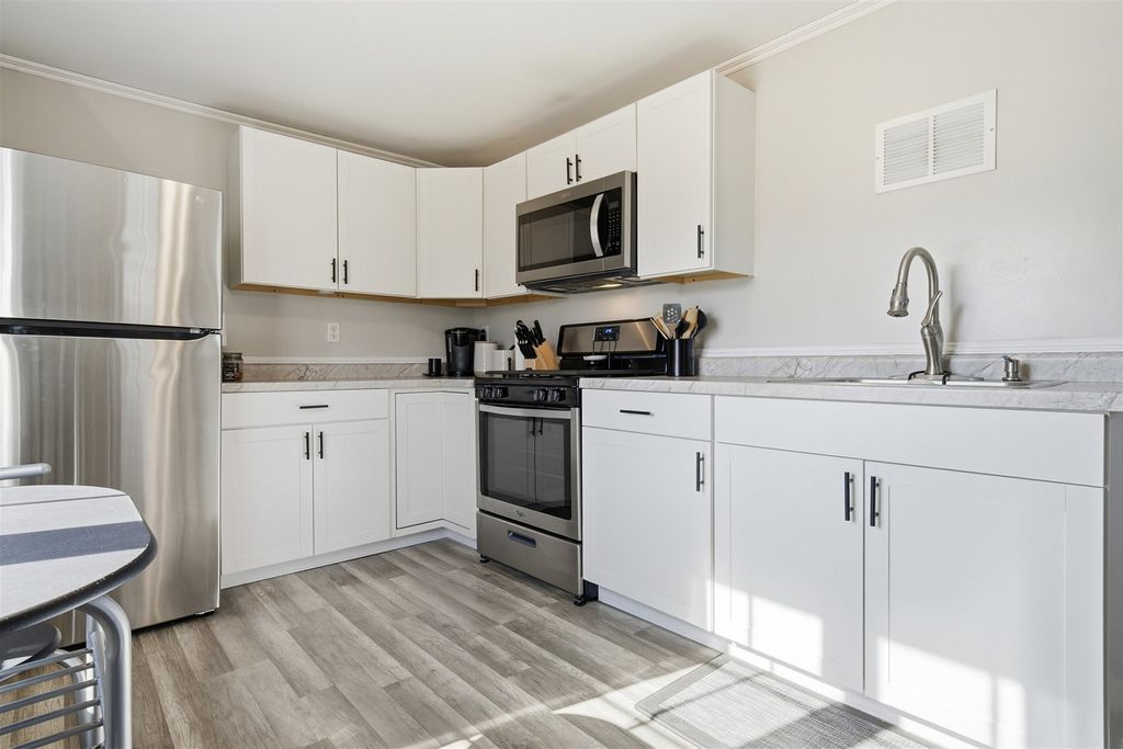 Welcome home to this adorable 2-bedroom 1 bathroom ranch, LOTS of updates! 2023 NEW central air-conditioning, 2023 Refrigerator, 2023 Shed added in the large, fenced back yard with NO backyard neighbors. The kitchen was remodeled with all new cabinets, flooring, gas range, and microwave in 2022. Both bedrooms had new carpets installed 2022, updated bathroom with a walk-in shower 2022, lots of fresh paint! ADDITIONAL updates furnace 2022, water heater 2019, roof 2020, new electrical panel 2022.