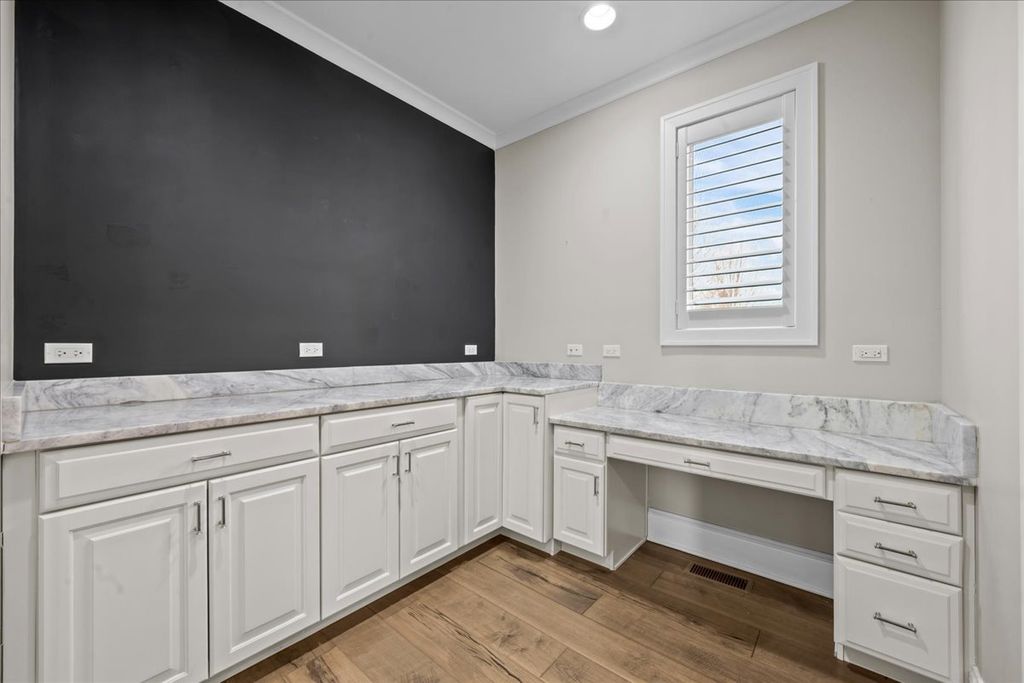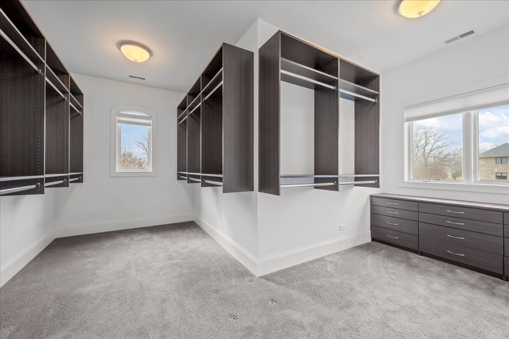 Built in 2015, this extraordinary 5,037-square-foot brick & stone estate is gracefully positioned on over an acre within a serene cul-de-sac in Wimbledon Estates, offering the perfect balance of privacy, sophistication, and modern comfort. The residence showcases soaring ceilings, gleaming hardwood floors, and thoughtfully designed living spaces throughout. The gourmet eat-in kitchen features custom cabinetry, an oversized quartzite island, high-end stainless steel appliances, and a walk-in pantry. A wet bar connects seamlessly to the dining room, highlighted by custom millwork. The living room is accented with plantation shutters, while the family room offers a dramatic two-story beamed ceiling and gas log fireplace. Enjoy a south-facing backyard with a paver patio, gas fire pit, and hot tub-perfect for outdoor entertaining. A spacious mudroom and laundry room sit adjacent to the four-car garage with epoxy flooring. A versatile first-floor bedroom, ideal as an office or guest suite, is located next to a full bathroom. Upstairs, two staircases-including a front staircase with iron balusters-lead to the expansive primary suite featuring a large dressing room with wet bar and two oversized walk-in closets. The luxurious primary bath includes a soaking tub, large shower, and double vanity. Three additional bedrooms complete the second level: two generous bedrooms with walk-in closets share a Jack-and-Jill bathroom, and one bedroom offers an en-suite bath and walk-in closet. The unfinished basement features tall ceilings, is already plumbed for a bathroom, and is ready to be finished to suit your needs. Ideally located with convenient access to downtown Lake Forest and Lake Bluff, this exceptional home combines space, style, and location!
