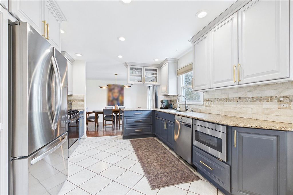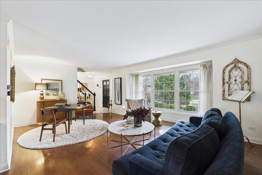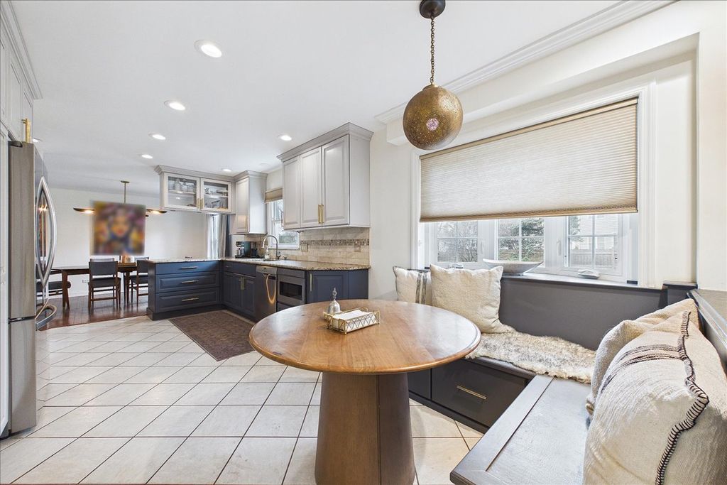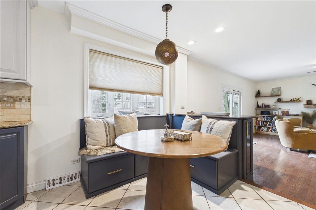 Not your average house! This beautifully maintained home blends timeless character, thoughtful updates, and the kind of inviting spaces that instantly make you feel at home. From the moment you arrive, the charming curb appeal, welcoming covered front porch, and mature landscaping set the tone. Step inside to a bright, airy main level featuring rich hardwood floors, elegant millwork, and an abundance of natural light pouring through oversized windows. The spacious living room is truly the heart of the home-sun-drenched and open, with a stunning wall of windows that brings the outdoors in. It flows seamlessly into the dining area, creating an ideal layout for everyday living and entertaining. The beautifully updated kitchen is both stylish and functional, featuring crisp white cabinetry paired with designer blue lower cabinets, granite countertops, stainless steel appliances, custom tile backsplash, and generous storage. Just beyond, a cozy breakfast nook with built-in seating offers the perfect spot for morning coffee while overlooking the backyard. Upstairs you'll find comfortable bedrooms with great natural light and flexible space for guests, family, or a home office. The finished basement expands the living space dramatically, offering a large recreation area perfect for movie nights, game tables, workouts, or entertaining. With its bold designer color palette, recessed lighting, and wide open layout, this space feels more like a stylish lounge than a typical basement. Step outside to a private, fully fenced backyard featuring mature trees, a spacious patio, and plenty of room for entertaining, relaxing, gardening, or play. With beautiful updates, generous living spaces, and a backyard designed for gathering, this home delivers the perfect blend of comfort, style, and everyday livability in a wonderful neighborhood close to parks, schools, shopping, and dining. The roof was brand new in 2020 & the furnace was in 2018. Homes with this much personality, space, and warmth don't come around often.
