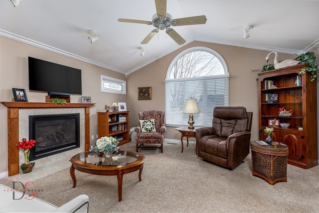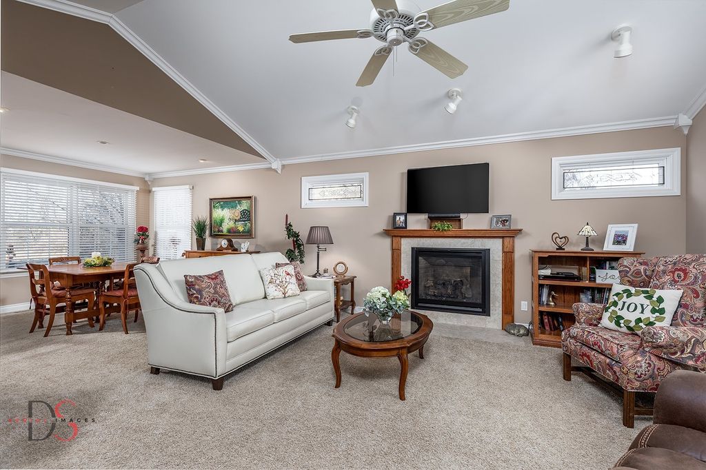 This Northside Ottawa 3-bedroom ranch combines spacious living with thoughtful functional upgrades. The open-concept living and dining area features vaulted ceilings and a cozy gas fireplace, flowing seamlessly into a kitchen finished with maple cabinetry with pull-out shelving and granite countertops. Bathed in natural light, the adjacent sunroom offers a serene retreat. The master suite serves as a private oasis with its elegant tray ceiling, expansive walk-in closet, and a walk-in tub installed in 2024. For additional living space, the lower level includes a family room, a full bath, and a versatile flex bonus room for office or recreation room. Practicality is a highlight of this home, featuring a three-car garage with direct basement access for easy moving and storage. The lower level also provides a dedicated workshop and abundant storage space including 8 shelving units. Outdoors, enjoy picturesque sunsets from the paver patio and beautifully landscaped yard. Roof and Velux skylights replaced 2017. House Generator and all Appliances are included, and seller will leave sunroom furniture (not table/chairs) and Amish electric fireplace as a gift. Stained glass in master bath and stained glass in living room will stay with new homeowner. Taylor Way prepaid by seller for fertilizing for upcoming year.