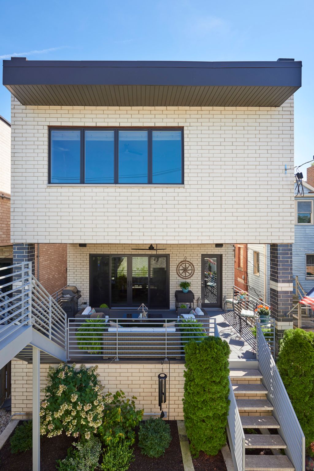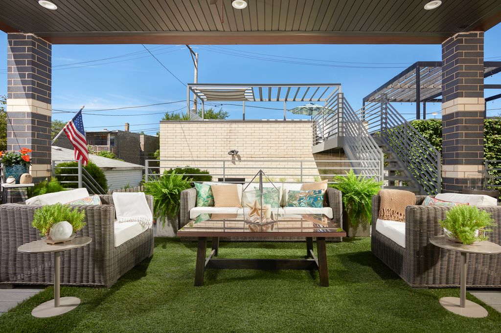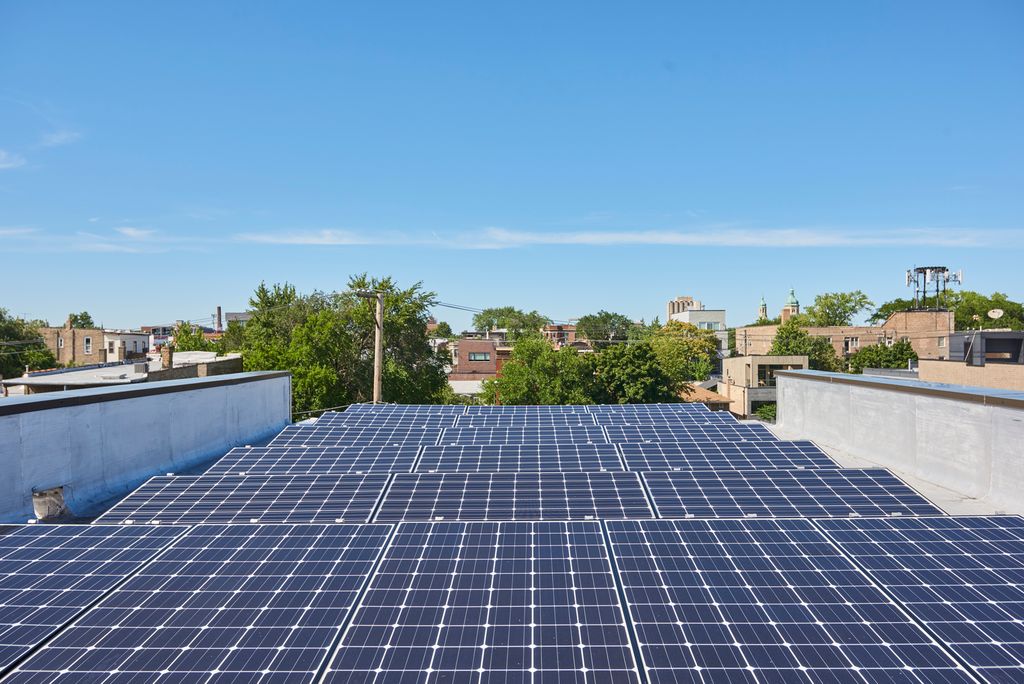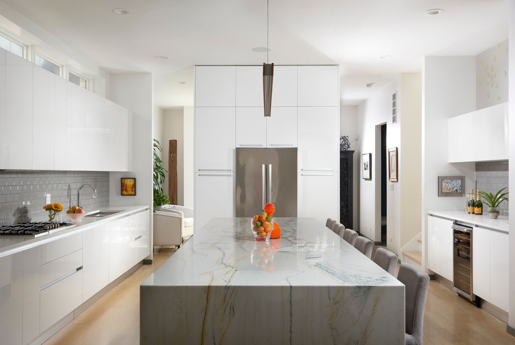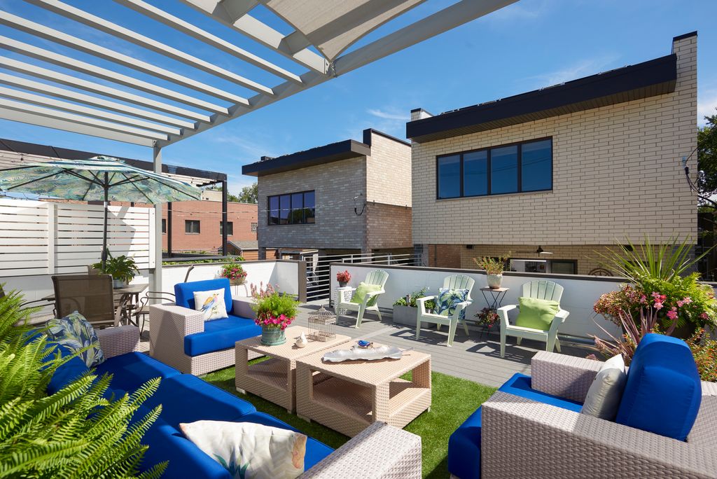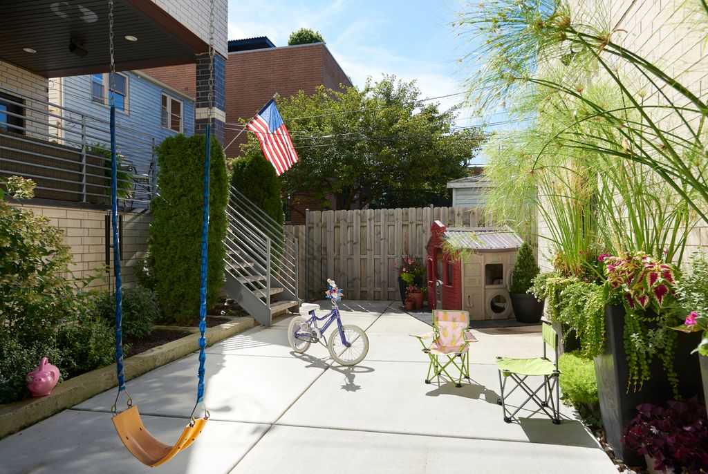 Spectacular home on a 30' wide lot with amazing finishes throughout. Exclusive all-masonry 4,584 sq ft 3-story residence with floor-to-ceiling windows flooded with sunlight. Features 5 bedrooms plus loft/office and 3.5 beautiful spa-like baths with heated floors. The main level is an entertainer's paradise with a massive Italian kitchen, waterfall island/table seating, pantry, storage, and wine bar. Huge sun-filled dining room and living room that opens to a large covered Trex deck with lighting and ceiling fan, plus a catwalk to the Trex garage rooftop terrace with privacy fence, pergola, and sun-sail shade. Main floor also includes a large mud room with rear access to the deck and patio. Upper level offers 3 bedrooms, laundry room, and a bright loft/office. The primary suite features custom lighting, a 23' custom California Closet system, and a luxury bath with soaking tub, rain shower, and Italian cabinetry. Sunny lower level includes a massive family room, wine bar with Italian cabinetry, 2 large bedrooms with walk-in closets, spa-like bath, 2nd laundry room, storage room, and radiant heated floors. Roof landing has storage cabinetry and plumbing rough-ins for future sink, fridge, and a potential 4th outdoor space. Green technology throughout: high-efficiency 2-stage variable HVAC with humidifiers and UV air filtration, plus 22 solar panels with transferable warranty and full production monitoring. LEED Silver home. Professionally designed and highly organized. Prime West Town/Ukrainian Village location near Smith Park, West Loop, and Level 1+ Mitchell School.