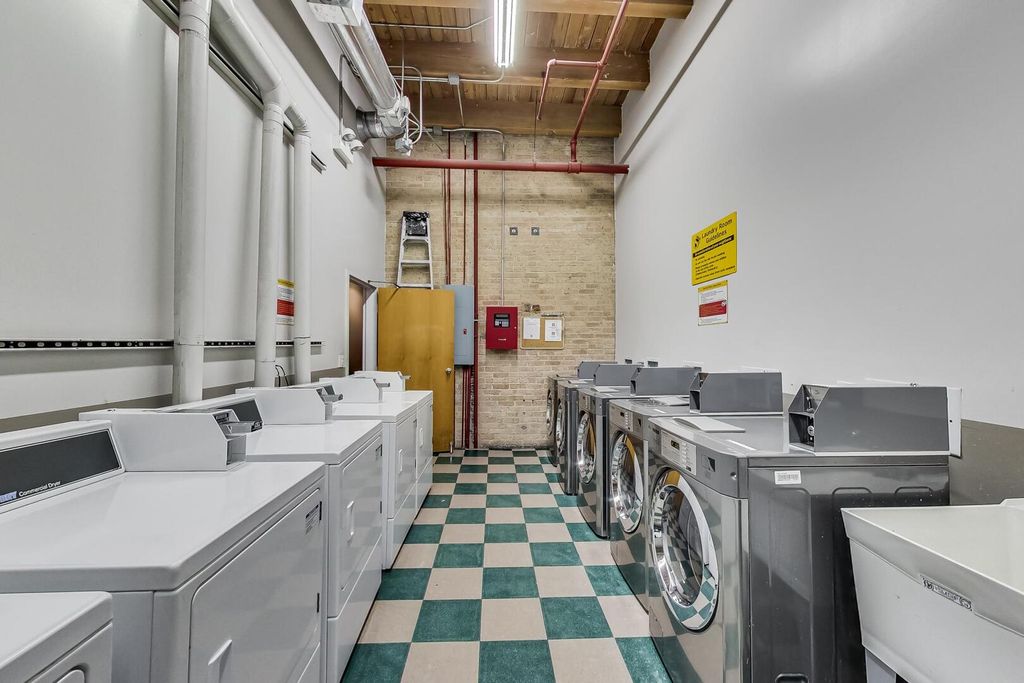 Discover authentic Chicago loft living at the iconic Post Card Factory Lofts in the heart of Lakeview. This move-in ready 2-bedroom, 1-bath residence blends timeless industrial character with thoughtful updates - all in a surprisingly quiet setting. Unlike what you might expect from the address, this unit does not face Irving Park Road, offering a more peaceful and private atmosphere while still being steps from everything Lakeview has to offer. Inside, you'll find soaring 14-foot timber ceilings, exposed brick walls, oversized south-facing windows, and rich hardwood floors that create a warm, light-filled space. The expansive open living and dining area is anchored by a gas fireplace, making it ideal for both everyday comfort and entertaining. The modern kitchen features stainless steel appliances, quartz countertops, and an impressive eight-foot island with seating - perfect for cooking, gathering, or casual dining. The primary bedroom offers generous closet space, while the lofted second bedroom provides flexibility for guests, a home office, or creative space, with additional storage below. New window treatments (blinds) have been added throughout, enhancing both privacy and style. Brand new, extra-large bathroom vanity, sink, quartz counter top, and in-unit GE washer dryer, conveniently built in behind the vanity, giving the next owner immediate value and functionality. Building amenities include resident and freight elevators, bike storage, a nearby second-floor laundry room, trash chute, and a shared rooftop deck with panoramic city views. One assigned parking space in the attached heated garage is included, plus ample street parking for guests. Located just steps from the Brown Line, and minutes from Lake Michigan, Belmont Harbor, Wrigley Field, restaurants, coffee shops, and neighborhood favorites - this home offers the best of Lakeview living with character you simply can't replicate. A true loft with history, charm, and comfort.