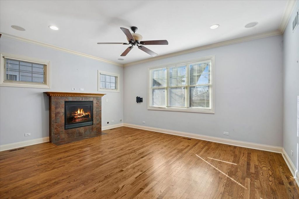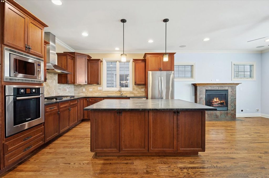 Beautiful, spacious, and light-filled, quality Cherryfield-built home -- walking distance from all that's fantastic about downtown Forest Park. Steps from cafes, boutiques, restaurants, and entertainment. Easy walk to blue and green line/METRA. If you're working at home -- you'll have plenty of space! Perfect live/work, even school from home space. 4BR, 3.5 baths. Super-functional open floor plan, high-end finishes & custom millwork. Great natural light. Lovely kitchen beautiful 42" cabinetry and stunning soapstone counters with huge island that includes deep cabinets and drawers for storage. Perfect for entertaining. Kitchen opens to welcoming family room with gas fireplace w/door to west facing deck -- ideal grilling and entertaining spot. Super bright and expansive primary suite has 15x9 walk-in closet primary bath with gorgeous travertine tile, double sink, & custom oversized shower. 2 additional, really well-sized bedrooms with large closets, and a large laundry room round out the 2nd-floor. The 3rd-floor "tree house" which is full of light and great views, has a large 4th bedroom, large closet, full bath & spacious office/play/school-at-home area. Back entry mudroom with custom cabinetry is charming and functional. Full basement (35'x23' ) with high 9' ceiling is perfect for a home gym, kids' play space, and plenty of storage. Includes a workshop. Freshly painted throughout (including awesome front porch -- enjoy those gorgeous late summer/early fall evenings outside). Amazing space!