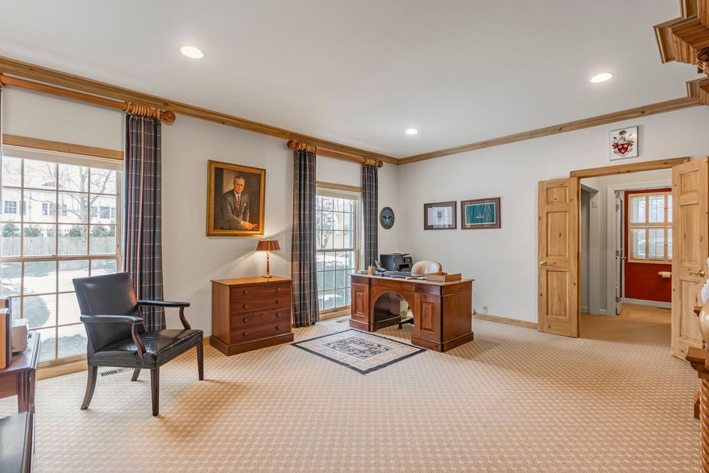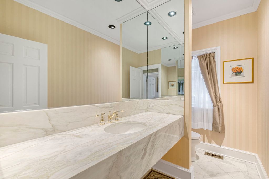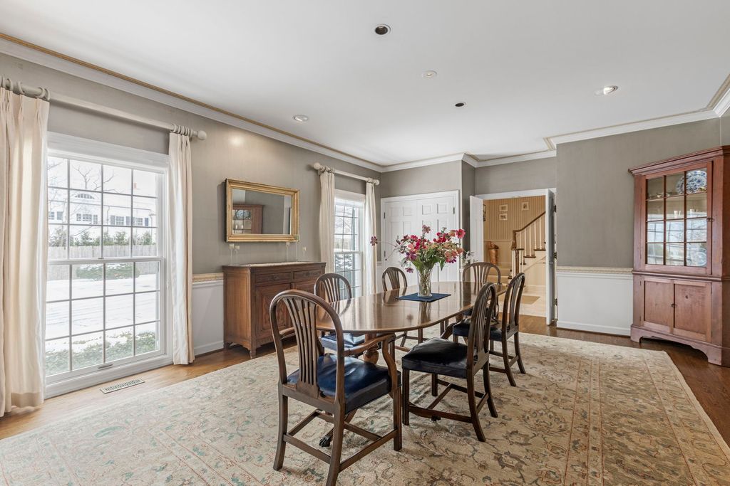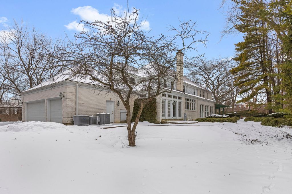 An elegant retreat near the shores of Lake Michigan, this beautifully designed four-bedroom all-brick residence with a separate study offers refined living in a coveted setting. Enjoy seasonal lake views from the second floor. The house offers 5,200 square feet above ground, and is sited on just under one acre. Built in 1980, the home blends classic architecture with generous proportions, highlighted by 9-foot ceilings on the first floor, that create an immediate sense of light and openness. Thoughtfully laid out for both everyday comfort and gracious entertaining, the residence features expansive living areas, well-appointed bedrooms, and a private study that includes a full bathroom. This room could be used as a first-floor bedroom. The classic kitchen includes large island with storage, high-end stainless-steel appliances, two ovens, wine cooler, two glass display/storage cabinets, and granite counters. Built-in bookshelves and cabinets featured in living room, sunroom, study, and main bedroom, provide extra storage and perfect place to display your treasures. The full, finished 2,400 square foot basement includes recreation areas, an exercise room, stage and dance floor, and abundant storage. The property boasts a three-car garage, and patios off the family room, living room, and sunroom. Gorgeous perennial gardens and pristine landscaping complement this stately home. Set amid the natural beauty and serenity of the lake area, this home offers a rare opportunity to enjoy space, sophistication, and proximity to Lake Michigan in a timeless, welcoming environment. Close to downtown Lake Forest and train station.