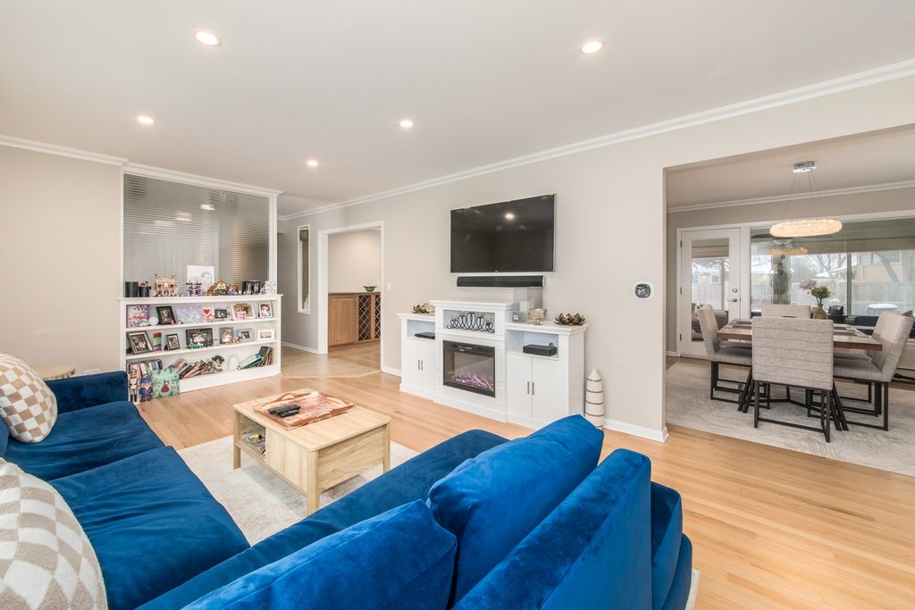 Sprawling brick and stone ranch in the highly coveted Cumberland neighborhood! Situated on a beautifully manicured oversized lot, this home exudes timeless curb appeal and effortless single-level living. Inside, a sun-drenched living room offers an airy, inviting feel, while the kitchen features stainless steel appliances, abundant cabinetry, and a statement island perfect for gathering and meal prep. The spacious dining room is ideal for hosting with ease. Generously sized bedrooms feature double closets for exceptional storage. Hardwood flooring, crown molding, and recessed lighting throughout the main floor. Beautifully updated main-floor bathroom. The expansive lower level creates the ultimate entertainment zone, complete with a half bath, dedicated laundry area, and substantial utility space. The cozy sunroom leads to your fully fenced backyard featuring a patio retreat and new sod, plus an exterior sprinkler system for easy maintenance. Attached garage and expanded concrete driveway provide ample additional parking. Super convenient location close to the Metra, downtown Mount Prospect, and downtown Des Plaines. This home is a rare blend of space, style, and substance in one of the area's most sought-after locations.