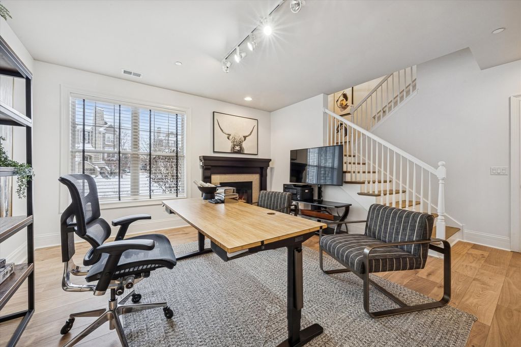 Discover a rare standard of "turnkey" in this meticulously renovated Hamptons of Hinsdale townhome. This is a complete refresh- designed for those seeking a fresh start without compromise. Basking in southern light, this bright Cotswold model offers the scale of a single-family home with the freedom of low-maintenance living. Nearly every surface has been touched: stunning new designer flooring, a refreshed kitchen, and two brand-new, spa-inspired bathrooms-all wrapped in a sophisticated, professionally curated neutral palette. The architecture inspires, from nine-foot airy ceilings to a private first-floor office anchored by a cozy fireplace. Upstairs, three expansive bedrooms provide a peaceful retreat for family or guests. With an oversized two-car garage and immaculate maintenance throughout, every detail screams "new." Step out to the quiet elegance and walkable convenience of The Hamptons, just moments from Elm Elementary and steps from Hinsdale Central. Modern, clean, and ready for a quick close-your seamless next chapter begins here.