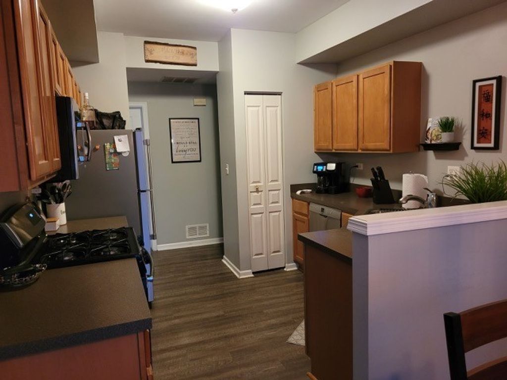 Rarely Available Ranch Townhome with Pond & Forest Preserve Views! Rarely available first-floor ranch end-unit townhome offering breathtaking scenic views of the pond and forest preserve, this is one you don't want to miss! Step inside to discover newer premium neutral vinyl plank flooring and fresh neutral gray paint throughout, creating a bright, modern, move-in-ready feel. Natural light fills the spacious living areas. The open layout features: Large living room perfect for relaxing or entertaining, Eat-in kitchen with sliding glass door leading to a private patio overlooking the pond and nature area. All appliances included - washer, new dryer, new stainless steel refrigerator, built-in stainless steel microwave, and stainless steel dishwasher. The extra-large primary suite offers a private attached bath and generous walk-in closet. Additional highlights include Private entrance, Attached 2-car garage, Peaceful end-unit location. Friendly, well-maintained neighborhood and conveniently located near shopping, Metra, I-88, and part of the highly acclaimed Naperville 204 school district. A must see - homes like this rarely become available!