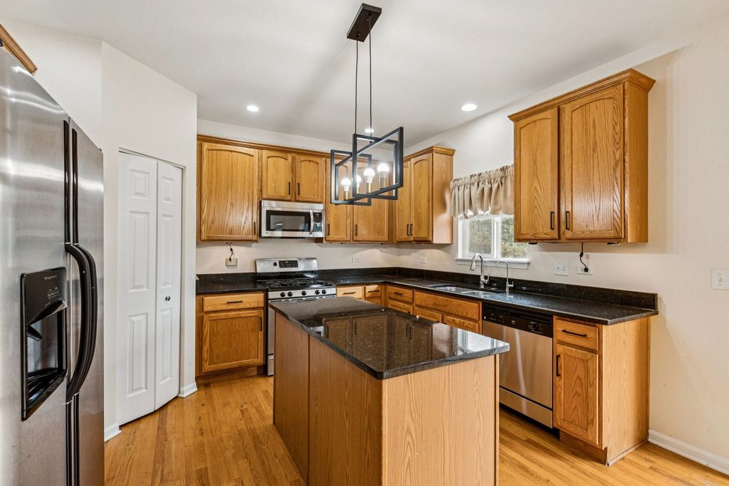 Welcome to this meticulously maintained home in the highly desirable Grand Pointe Trails Subdivision! You are instantly greeted by hardwood floors that extend throughout the main level and this home offers a formal living and dining room, perfect for all the entertaining you may hope to do! The kitchen boasts S/S appliances, island, Oak cabinetry, large pantry and granite countertops. Adjacent is the family room with a cozy wood-burning fireplace, and a conveniently located utility and powder room round out the main level. The spacious primary bedroom offers two walk-in closets, ensuite bathroom with dual vanity sinks, soaking tub and shower. There are also three additional generously sized bedrooms, full bathroom and loft upstairs. Step down into the warm and inviting basement which includes plenty of additional living space, office and storage. Enjoy your outdoor living on your east facing patio surrounded by mature landscaping. All this, plus the award winning district 308 schools. Schedule your tour today!