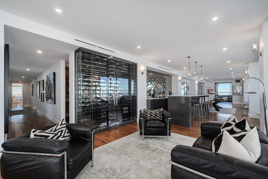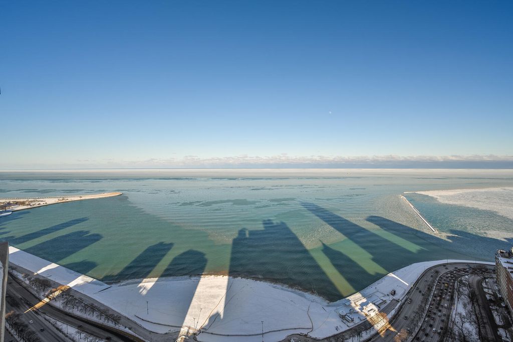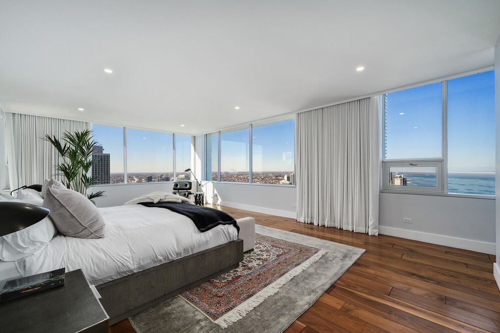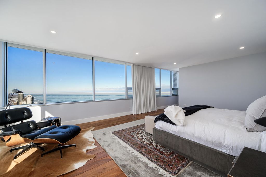 Perched on the 47th floor at the iconic intersection of Lake Shore Drive and Oak Street, this full-floor luxury condominium for sale in Chicago's Gold Coast offers a rare combination of scale, privacy, and unobstructed views. Spanning approximately 6,600 square feet, the residence delivers refined, high-rise living in one of Chicago's most prestigious neighborhoods. This exceptional home features two expansive 50-foot private terraces with 360-degree panoramic views of Lake Michigan and the Chicago skyline, creating an extraordinary indoor-outdoor living experience seldom found in Gold Coast condominiums. The residence includes five bedrooms, four full bathrooms, and two powder rooms, all within a fully renovated smart home outfitted with luxury finishes throughout. Design highlights include hand-scraped walnut hardwood floors, curated designer lighting, and meticulous craftsmanship in every room. The oversized primary suite functions as a private sanctuary, complete with a dramatic walk-in closet and dressing room, a dedicated office, and a spa-inspired white marble bathroom designed for comfort and retreat. The Bulthaup chef's kitchen is both sculptural and functional, featuring gorgeous countertops, a full Sub-Zero wall of refrigerators and freezers, premium integrated appliances, and custom cabinetry. The layout is ideal for everyday living as well as large-scale entertaining. Located within a full-amenity luxury building, residents enjoy an unbeatable Gold Coast lifestyle just steps from Oak Street Beach, the lakefront, world-class shopping, and renowned dining. This is a rare opportunity to own a full-floor luxury condo in Chicago's Gold Coast, offering iconic views, premier amenities, and an irreplaceable Lake Shore Drive address.