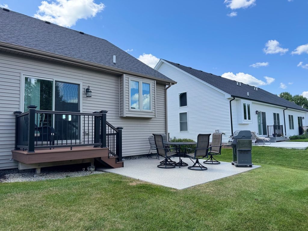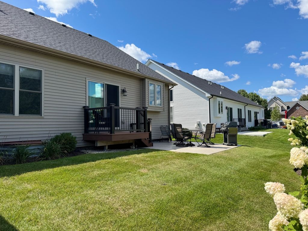 Welcome to your dream home in the desirable Deerpath Creek Villas, a stunning custom ranch that seamlessly blends elegant design with modern convenience. As you step inside, you'll be captivated by the dark wide wood floors that stretch throughout the open layout, providing a warm and inviting atmosphere. The spacious kitchen boasts sleek granite countertops and stainless steel appliances, perfect for culinary enthusiasts and entertaining guests. This charming residence features two comfortable bedrooms and two full bathrooms, thoughtfully designed for both privacy and functionality. The primary suite is a tranquil retreat, showcasing an elegant tray ceiling and an oversized shower for a spa-like experience. An additional loft area offers versatility, whether you envision it as a cozy reading nook, a home office, or a creative space. The accessibility of enlarged doorways ensures a seamless flow and comfort for everyone. Complementing the interior is a full basement, providing ample storage or the potential for additional living space tailored to your needs. Step outside onto the Trex deck that gracefully descends to a cozy patio, ideal for enjoying your morning coffee or evening gatherings under the stars. Enjoy the tranquility of community living while being just a stone's throw away from local amenities and nature trails. Don't miss your chance to own this exceptional property that combines style, comfort, and thoughtful design. Schedule a private tour today and discover the possibilities that await you!